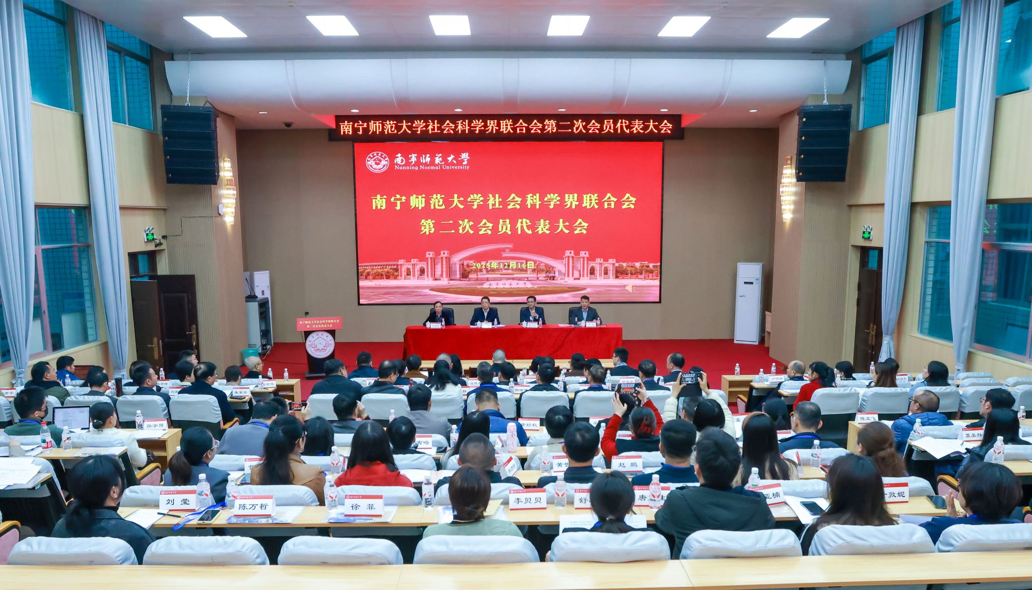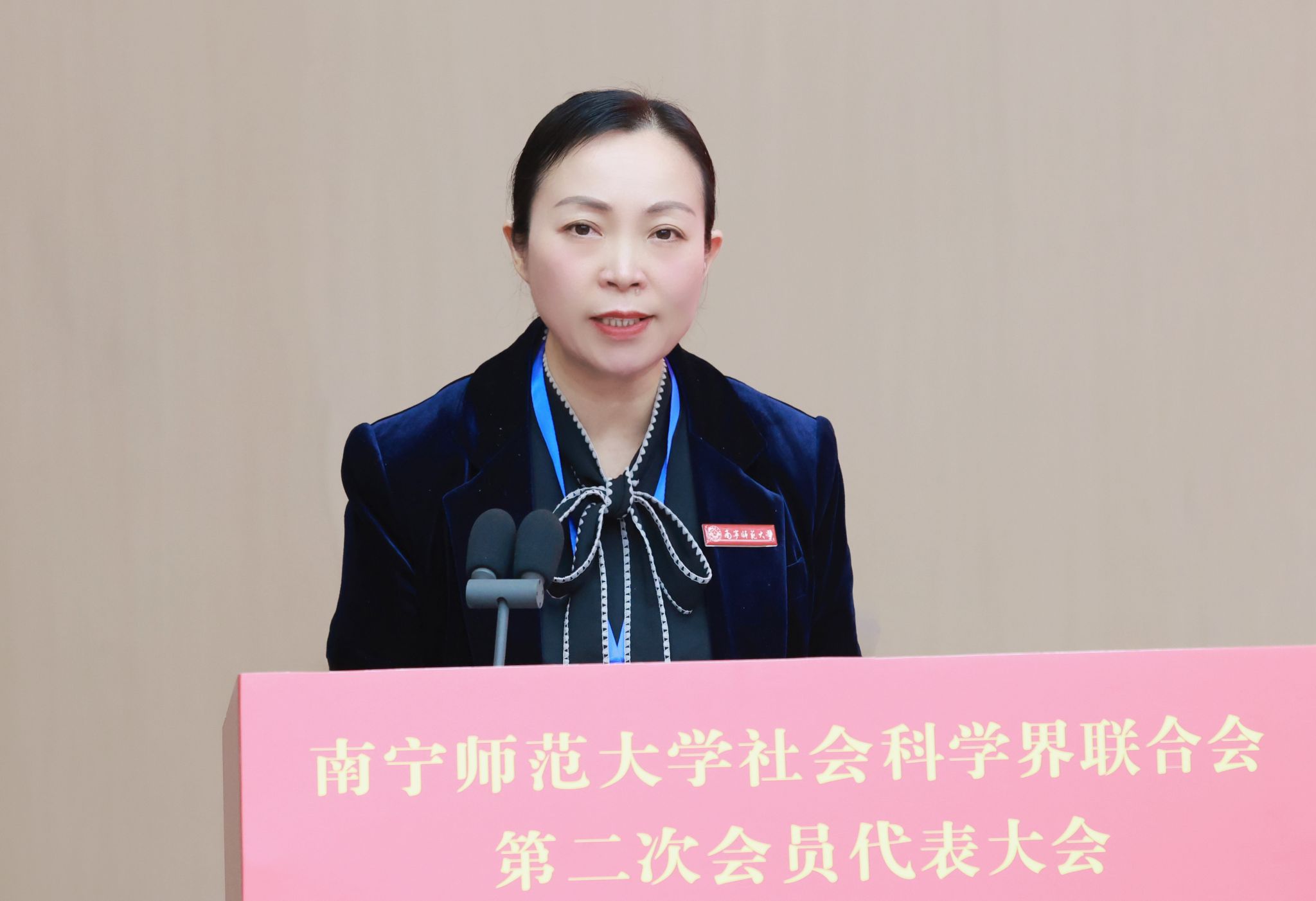 随后,大会听取了学校社科联第一届委员会主席龙妮娜作题为《立足边疆、开放融合、协同创新,奋力书写best365足球官网哲学社会科学新篇章》的报告。报告对校社科联第一次代表大会以来的各项工作进行了总结,五年来,校社科联团结带领广大社科工作者,在强化理论武装与政治引领、夯实学科基础与人才培养、推动科研创新与成果突破、拓展社会服务与智库建设、加强组织建设与治理效能等方面取得了一系列成效,为提升学校社科研究水平和服务地方发展能力作出了积极贡献。报告指出,未来五年,校社科联将以“数智赋能、融合创新、深耕区域、聚力东盟”为工作总基调,在五个方面持续发力:强化思想统领与战略引领,筑牢社科发展政治根基;推动文科专业融合发展与数字化转型升级,塑造未来文科新生态;深耕八桂大地,提升社科服务区域发展的贡献度与显示度;拓展中国—东盟合作网络,搭建人文交流与学术合作坚实桥梁;创新运行机制,建设高效能、有温度的“社科工作者之家”。