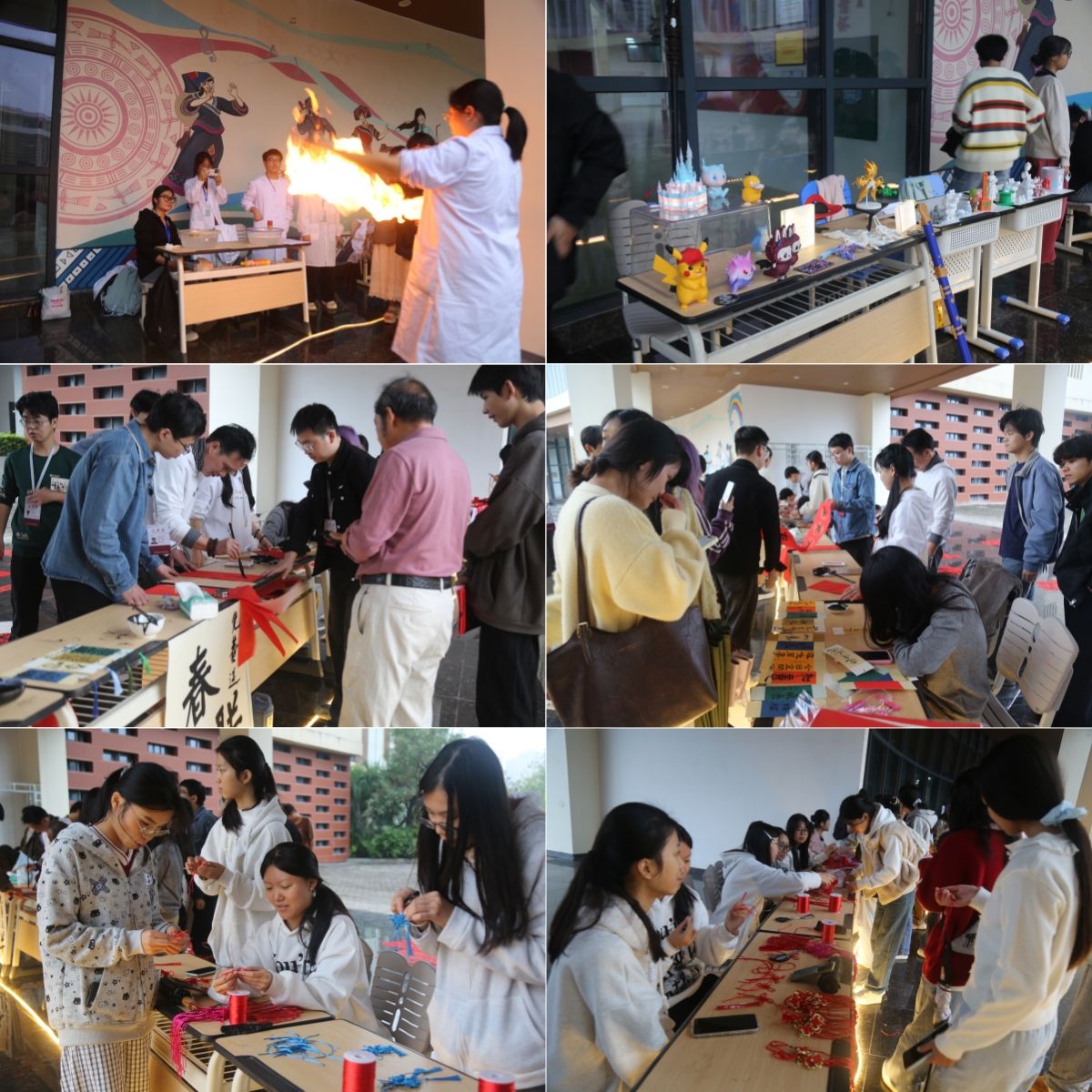 当天下午,校院两级学生社团在现场设置“青春微市集”,开展了“定格青颜”免费拍摄、“墨香贺春”春联定制、非遗工坊传统挂饰手作体验、趣味化学实验、近景魔术表演等活动,丰富多样的互动体验,让师生领略多元文化,提前感受新年氛围。