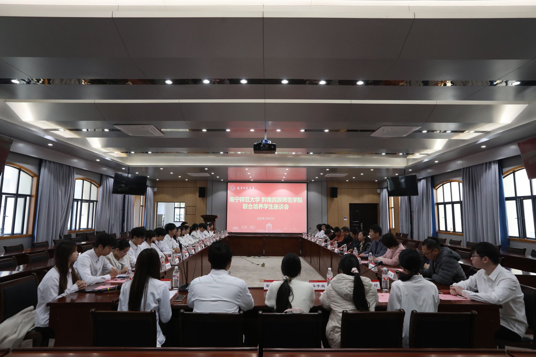 为落实师范教育协同提质计划,总结交换学习成果,凝聚校际育人共识,12月31日,best365官网在武鸣校区顺利举行best365足球官网 黔南民族师范学院联合培养学生座谈会。国内合作处、校团委、学生工作部(处)、教务处等部门负责人,相关学院党委副书记及学生代表参会。