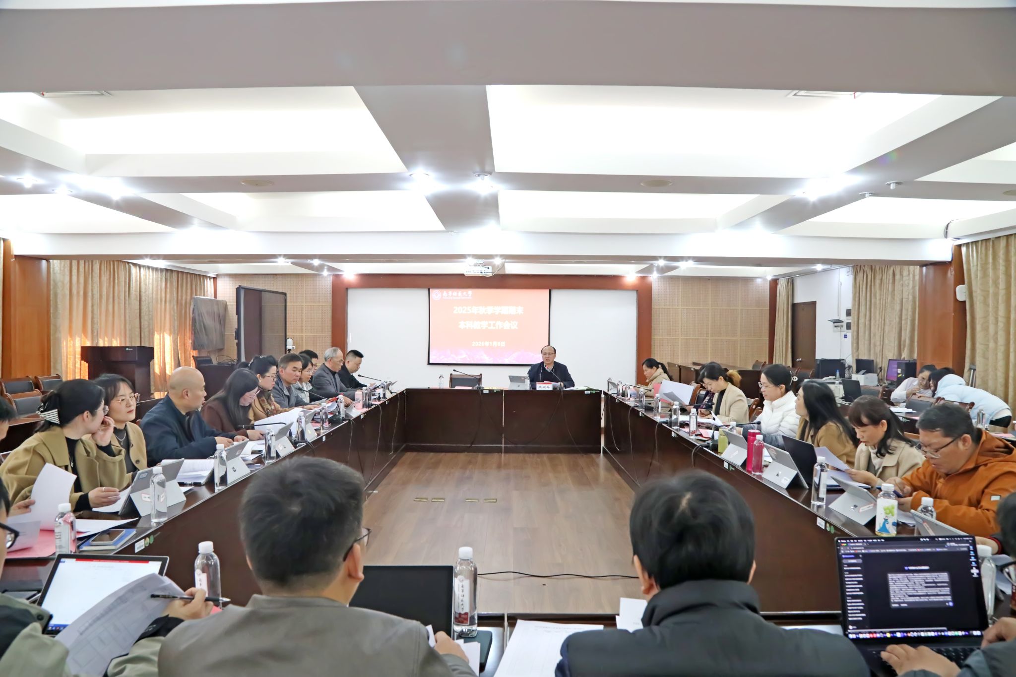1月8日下午,best365官网在鸿远楼409会议室召开2025年秋季学期期末教学工作会议,通报近期教学工作情况,布置2026年教学重点任务。各学院分管教学副院长及教务处全体人员出席会议。