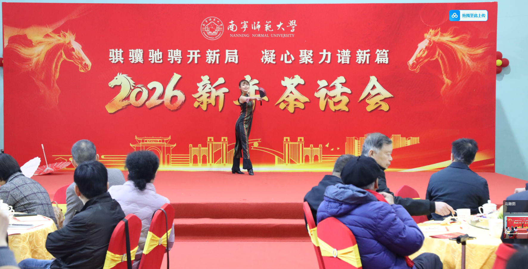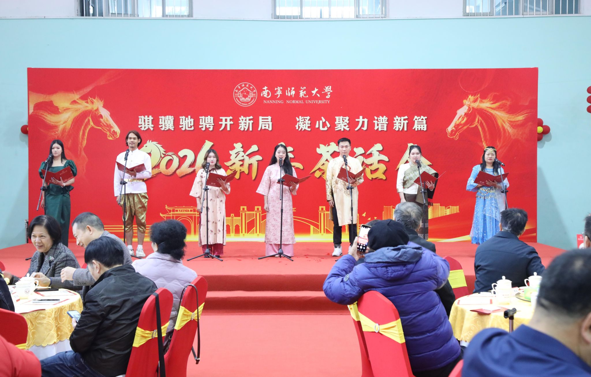 校党委书记张鹏代表学校党委,向各位老领导、老同志、民主党派和无党派人士、全校师生员工、广大校友以及关心支持学校发展的社会各界朋友们,致以诚挚的祝福和崇高的敬意。他指出,2025年是学校发展史上极具里程碑意义的一年。我们坚持以习近平新时代中国特色社会主义思想为指导,深入贯彻党的二十届四中全会精神及党中央和自治区党委决策部署,团结带领全校师生深化改革、接续奋斗,圆满完成“十四五”规划收官任务,推动学校高质量发展迈出坚实步伐。他强调,2026年是“十五五”规划开局之年,也是学校实现高质量发展的关键之年。学校将继续坚持和加强党的全面领导,全力推进“十五五”规划落地实施,真抓实干、乘势而上,为建成教师教育特色鲜明的高水平师范大学、服务广西经济社会发展作出新的更大贡献。
