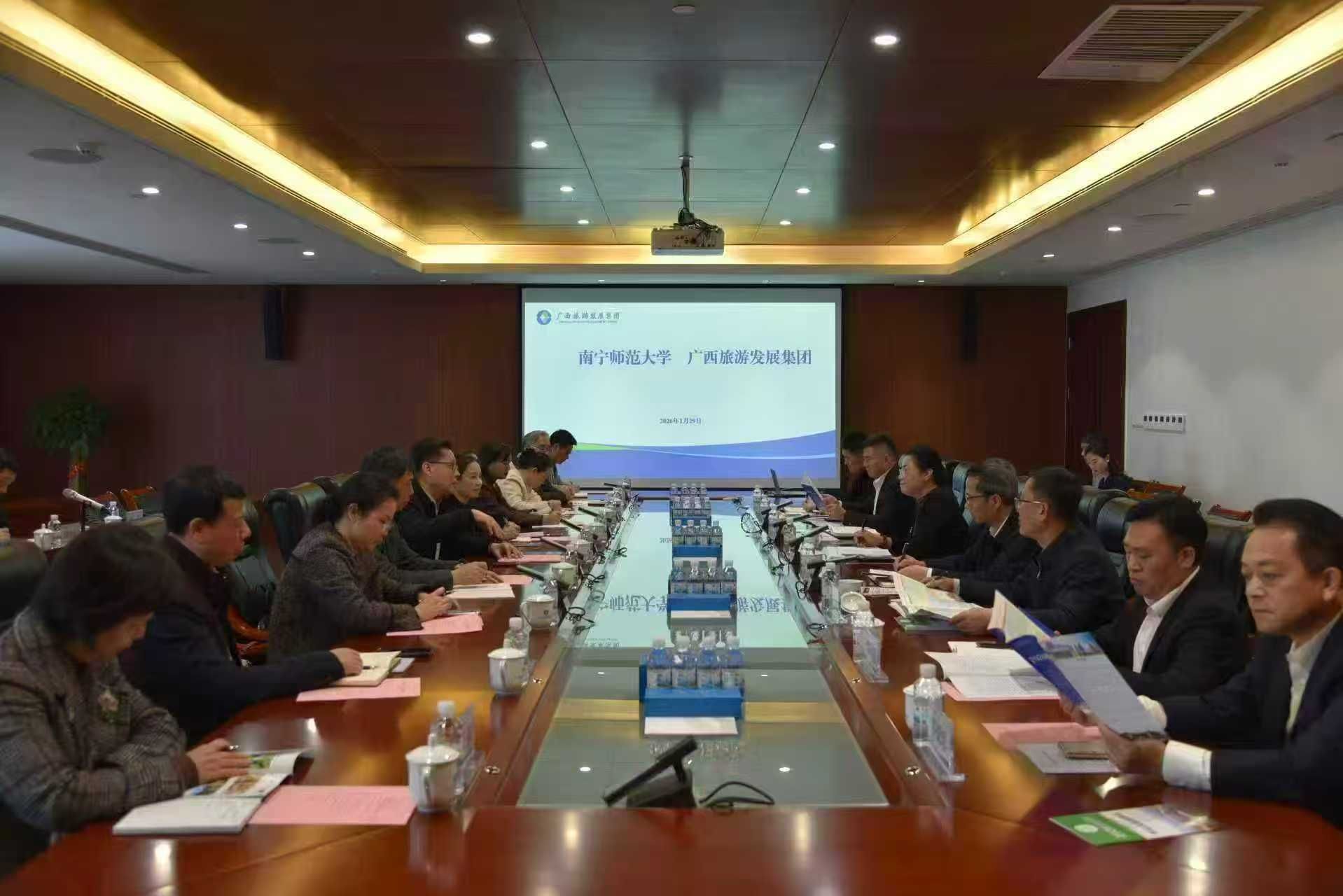 为落实国家关于促进高校毕业生就业的决策部署,推进访企拓岗促就业专项行动,积极响应自治区党委关于打造高水平旅游目的地的工作部署,1月29日上午,学校党委书记张鹏、党委副书记唐荣双带队赴广西旅游发展集团有限责任公司开展校企合作和访企拓岗调研。best365官网校友、广西旅游发展集团总经理潘鸣与该集团党委副书记张学强热情接待了张鹏一行。