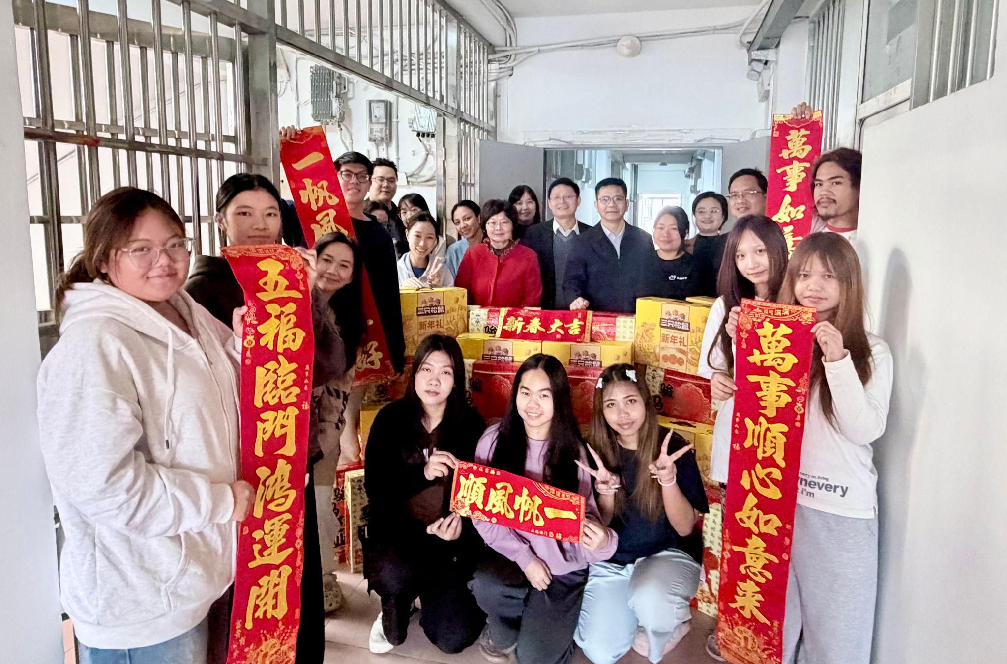 慰问过程中充满了浓厚的节日气氛。隆校长给同学们送上了满载心意的新春大礼包,让远离家乡的学子们倍感温暖。来自泰国的留学生李辉同学开心地分享道:“校长、老师们来看望我们,让我深深感受到了家的温暖。春联上的汉字很美,老师还为我们讲解了其中的美好寓意。”