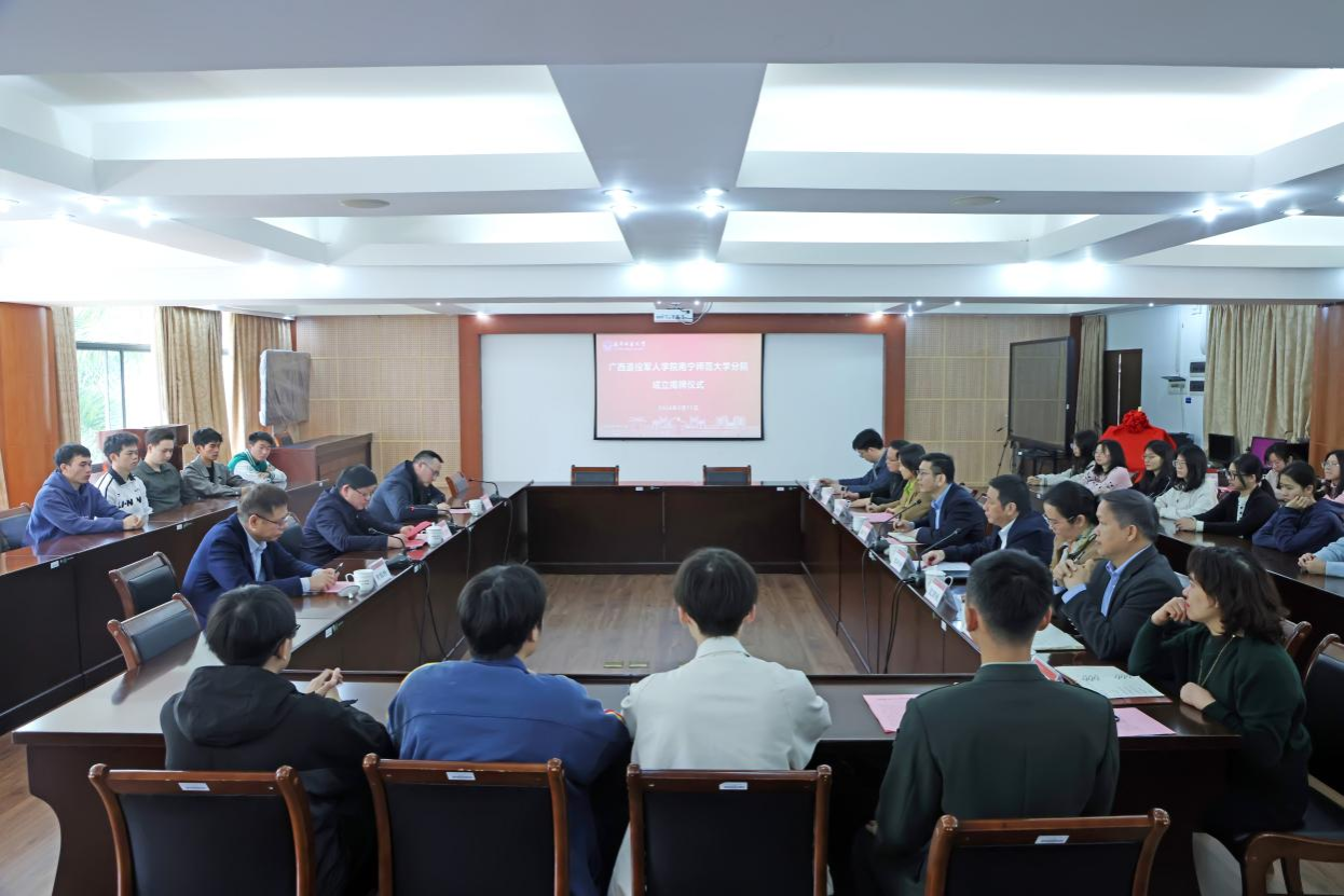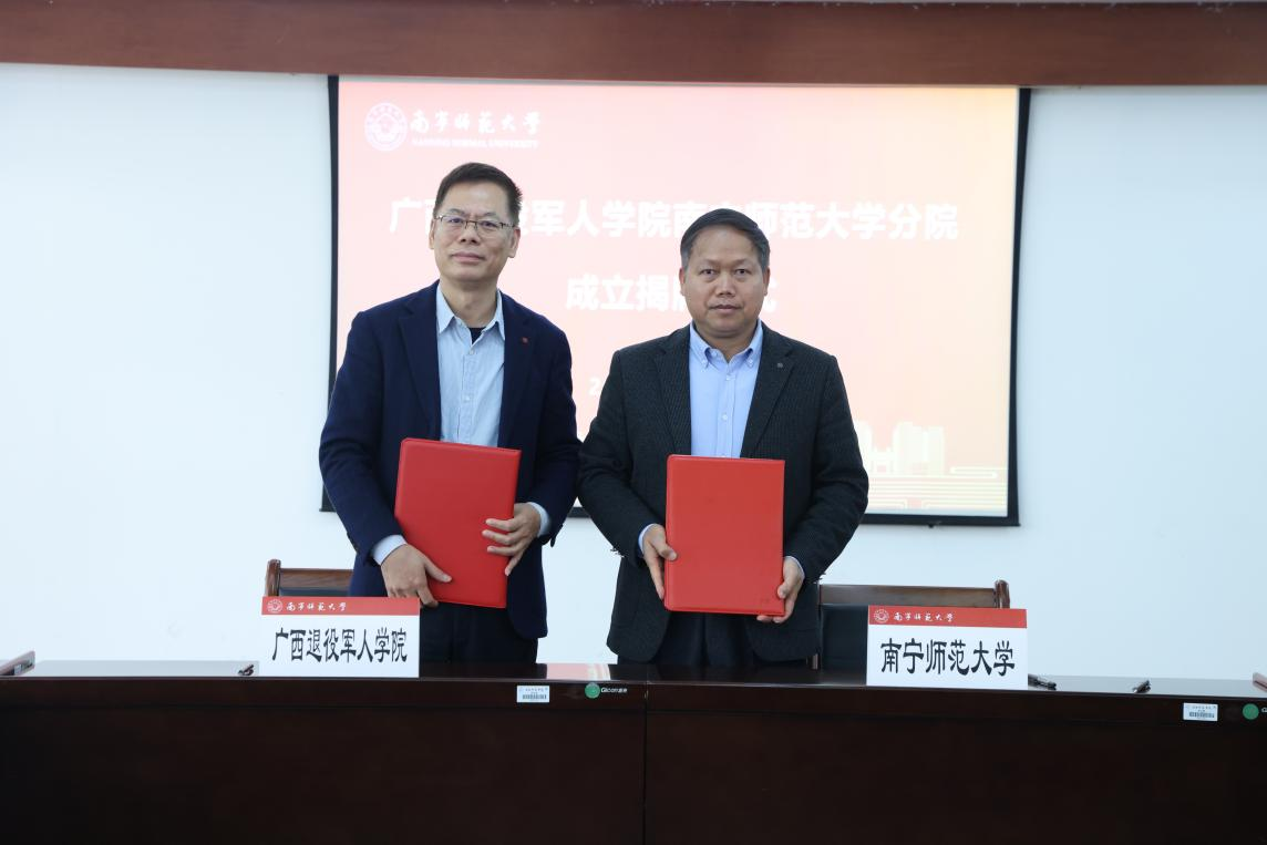 仪式上,隆广庆对自治区退役军人事务厅长期以来的关心支持表示感谢。他指出,成立广西退役军人学院best365足球官网分院,是光荣的政治任务,更是自治区党委、政府和退役军人事务厅对学校的信任与重托,对弘扬拥军爱军优良传统、提升退役军人服务保障水平、赋能广西事业高质量发展具有重要意义。他表示,分院将集学历教育、技能培训、就业实训、创业孵化、服务管理“五位一体”,着力打造特色鲜明、示范带动效应明显的综合性退役军人人才培养与实践基地。他强调,学校党委行政高度重视分院建设工作,将举全校之力、集全校之智,聚焦立德树人、专业赋能、服务保障、校地协同,全力打造退役军人服务保障的示范高地,为广西退役军人事业高质量发展、建设教育强区贡献南师力量。