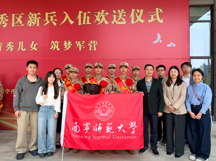 欢送会上,学校向应征入伍的同学们表示热烈祝贺,勉励大家传承八桂儿女忠勇血脉,牢记保家卫国的初心使命,把校园里的所学所悟转化为军营中的实干担当。希望新兵们到部队后,严守纪律、刻苦训练,锤炼过硬本领,磨砺坚强意志,以军人的标准严格要求自己,在国防建设的广阔舞台上建功立业,用青春和汗水守护家国安宁,为母校争光、为八桂添彩。