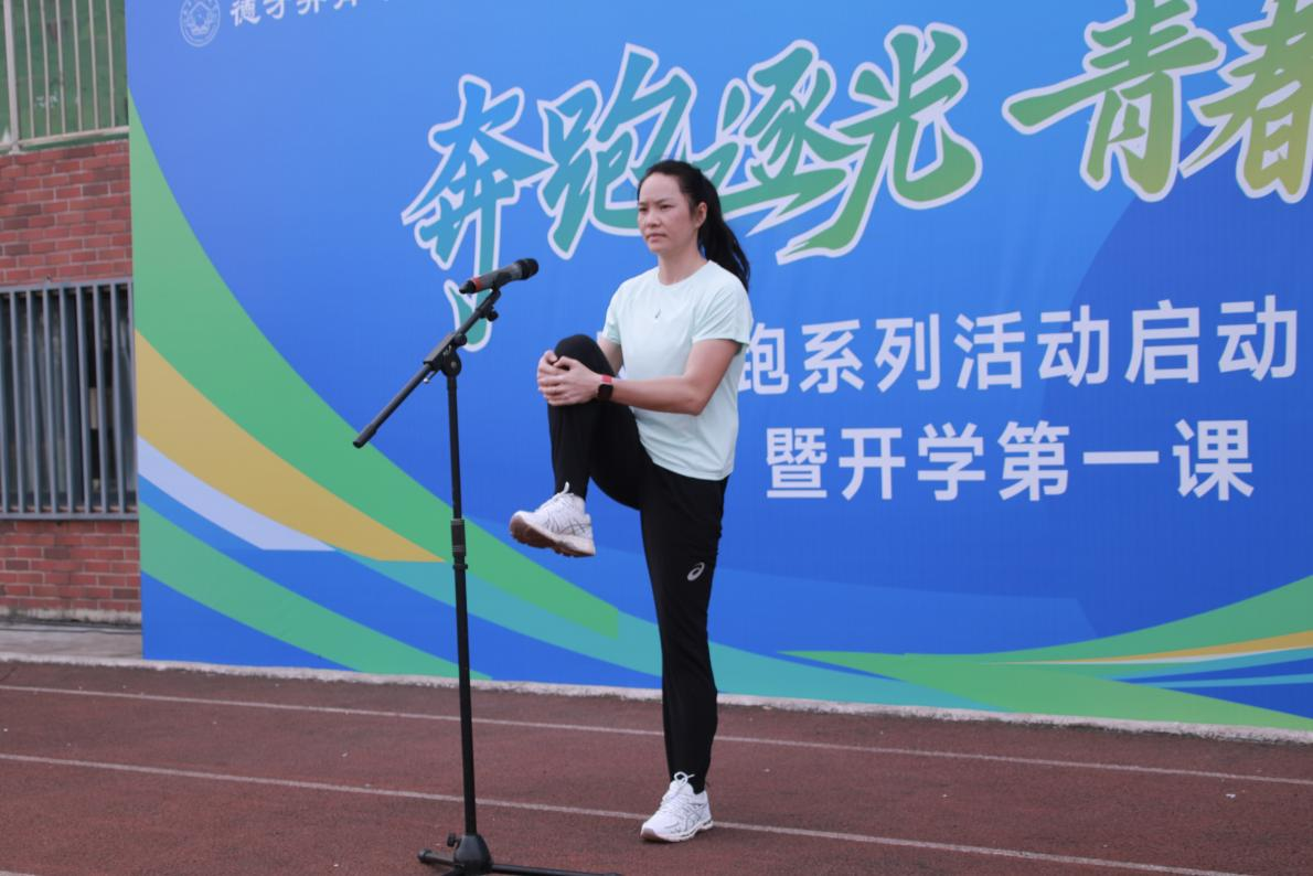 韦永丽带领全体师生进行热身