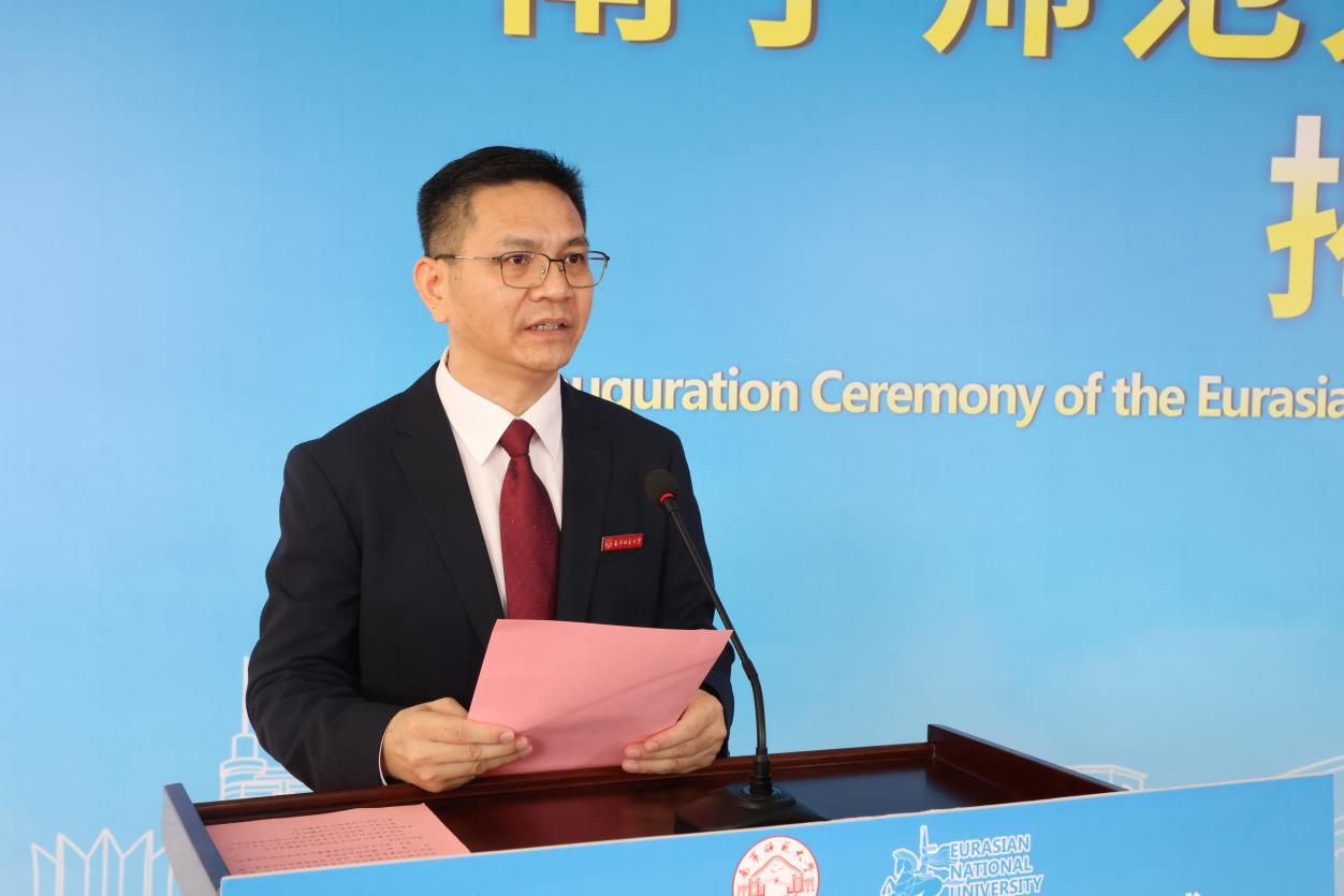 4月8日上午,best365足球官网欧亚理工学院揭牌仪式在武鸣校区地海楼大厅举行。自治区教育厅对外合作处副处长黄毅菲,哈萨克斯坦欧亚国立大学校长西迪科夫・叶尔兰・巴塔舍维奇、副校长贝森拜・阿达克・巴赫托维奇,best365足球官网党委书记张鹏、校长隆广庆、副校长龙妮娜出席仪式,两校相关单位负责人、师生代表共同见证这一重要时刻。仪式由隆广庆校长主持。