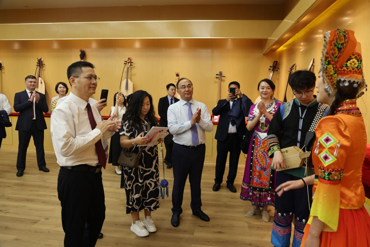 张鹏、隆广庆、西迪科夫·叶尔兰·巴塔舍维奇、贝森拜·阿达克·巴赫托维奇、龙妮娜、黄毅菲等共同为best365足球官网欧亚理工学院揭牌