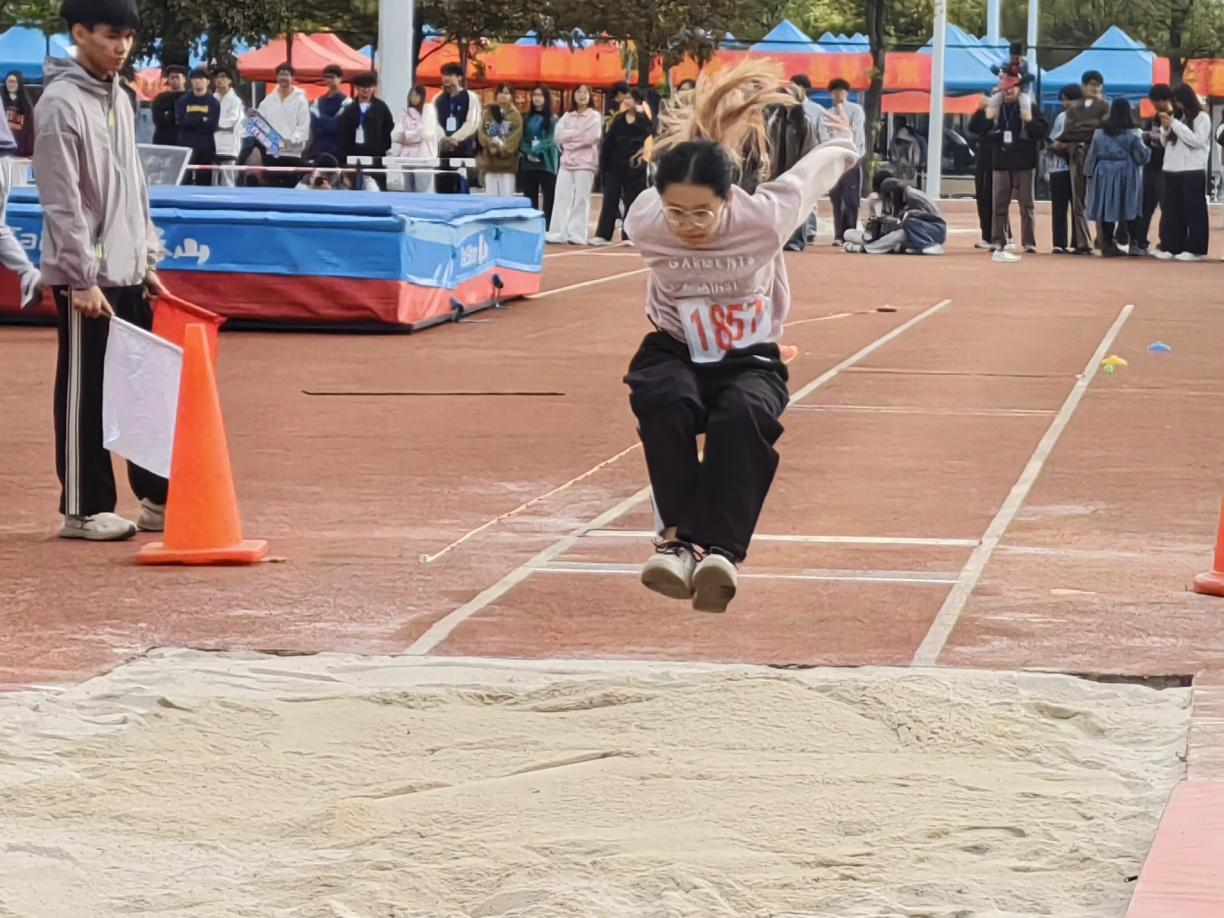 助跑、摆臂、蹬地、腾空,女子跳远赛场的每一串动作都一气呵成。选手们以灵敏的身姿奋力一跃,腾空时舒展的身影似跃动的弧线,落地的刹那,沙坑溅起的尘屑与赛场的掌声一同响起,将青春的利落与果敢尽数铺展。