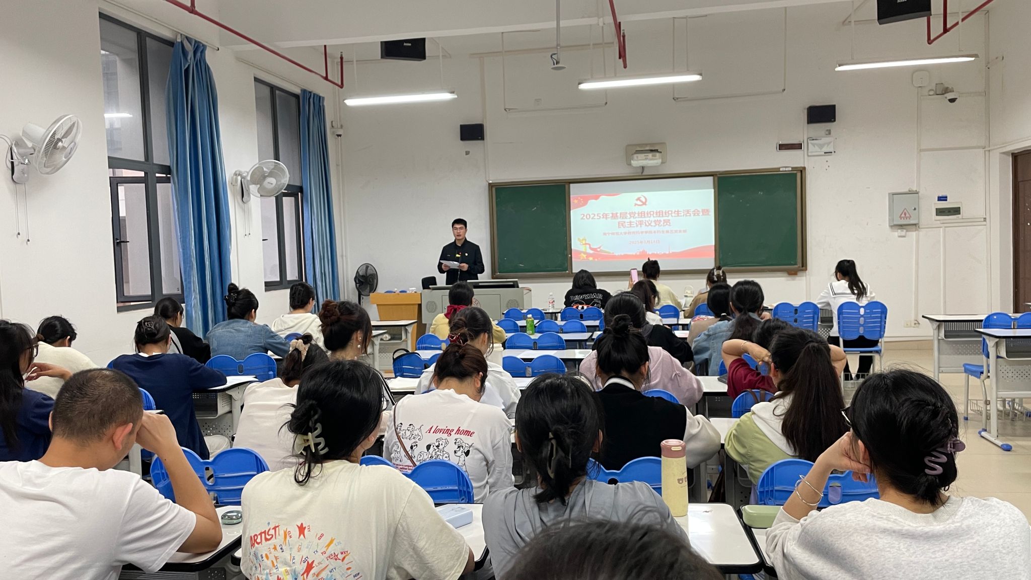 为深入学习贯彻党的二十大精神,进一步加强基层党组织建设,提升党员队伍凝聚力和战斗力,3月14日,教育科学学院本科生第五党支部在文综312教室召开了2024年度组织生活会暨民主评议党员会。会议由党支部书记巫福星主持。