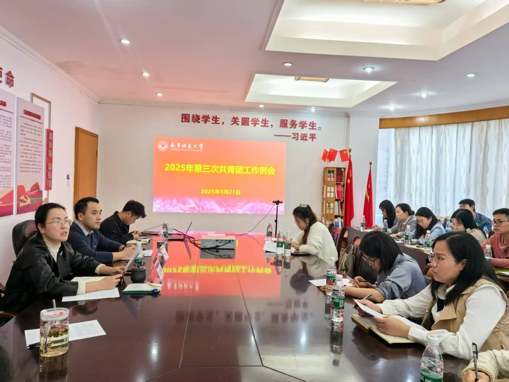 3月21日下午,best365官网在明秀校区行政楼四楼会议室召开2025年第三次共青团工作例会,校团委全体人员、各学院团委书记参加了会议。