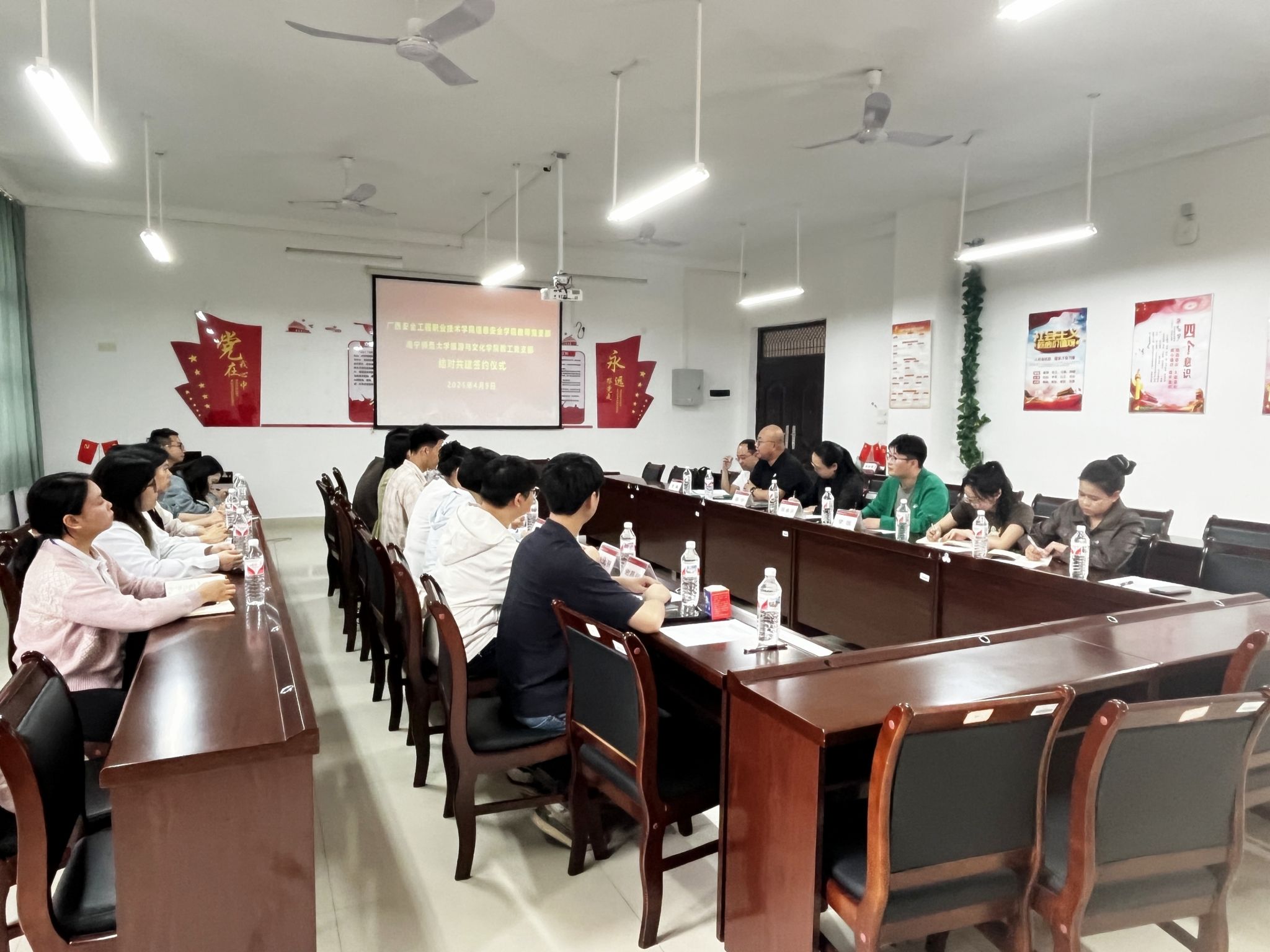 4月9日上午,广西安全工程职业技术学院信息安全学院党总支副书记朱小燕一行来旅游与文化学院就党建“双创”、“双带头人”、“强国行”等工作调研交流。会议由学院党委组织员姜宁主持。