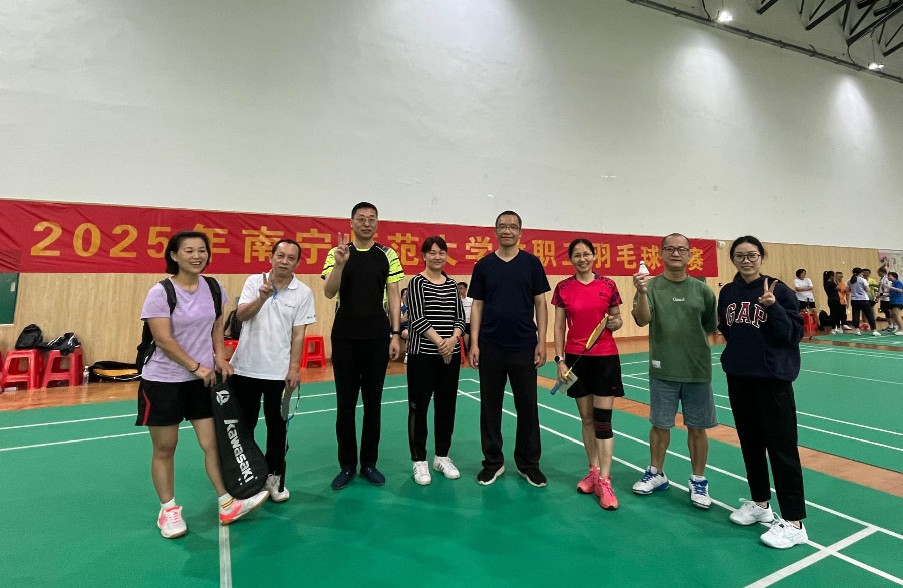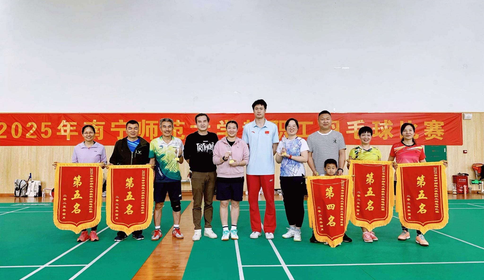 4月12日至13日,best365官网2025年教职工羽毛球比赛在武鸣校区兰园体育馆举行。本次赛事吸引了来自各院系及职能部门分工会的20支代表队参赛,经过小组赛及淘汰赛的激烈角逐,图书馆分工会代表队最终斩获第五名,赛出图书馆人的风采。