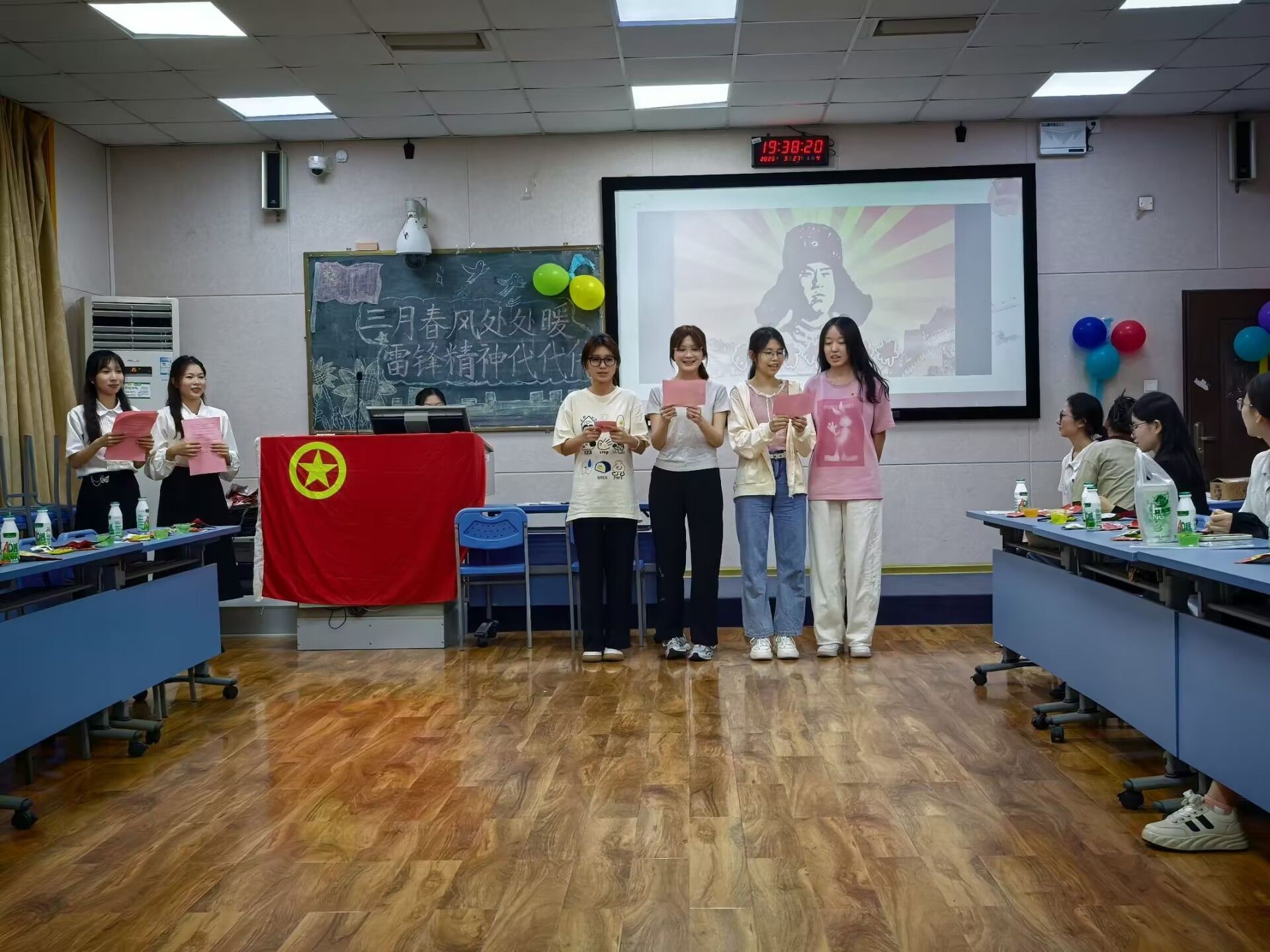 3月27日,初等教育学院23级陶行知实验班团支部在五合校区综合楼512开展了以“三月春风处处暖,雷锋精神代代传”为主题的团日活动。初等教育学院党委委员、23级陶行知实验班班主任罗聿言老师以及23陶研班团支部全体成员参加。