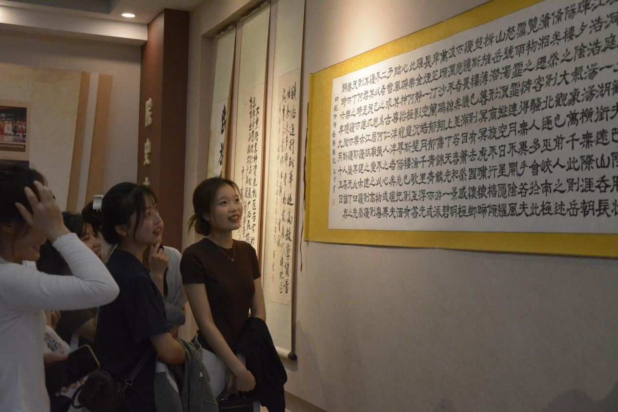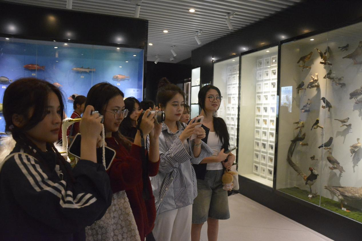 首先,在初等教育学院师生的陪同和讲解下,国际教育学院40名留学生代表参观明德馆,对初等教育学院的发展历史与办学成就进行深入了解。接下来,参观生物标本室,陈列于馆中的精美标本,引发了留学生们的热烈讨论。紧接着,大家一同欣赏了师范生基本功训练“三笔一画”优秀作品,学院学生创作的书法、绘画等作品,让留学生们连连称赞。