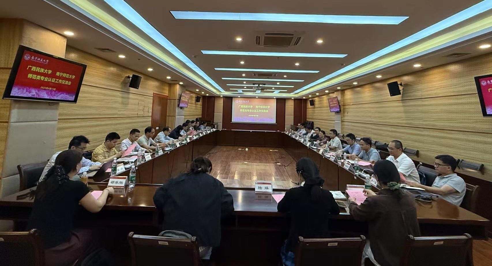 教育评价与教师发展中心介绍了best365官网开展师范类专业认证的总体情况,交流了专家入校认证环节的准备工作及入校考查流程,从迎接师范类专业认证工作的组织架构准备、材料清单准备、场地与设施筹备、联络与服务规划、日程与流程设计、执行要点以及入校考查等方面作了详细的经验分享。覃城阜从教务处在日常教学管理工作中如何推动各专业落实认证理念以及制度设计中的正向施工、反向设计等方面分享了师范类专业建设与管理的经验。严军一行就广西民族大学首次接受师范类专业认证准备及相关需要重点探讨的问题与best365官网参会者进行了充分的交流。他表示,best365足球官网师范类专业认证工作经验丰富、成效突出,希望通过此次交流、加强学习借鉴,努力实现广西民族大学师范类专业认证零的突破。