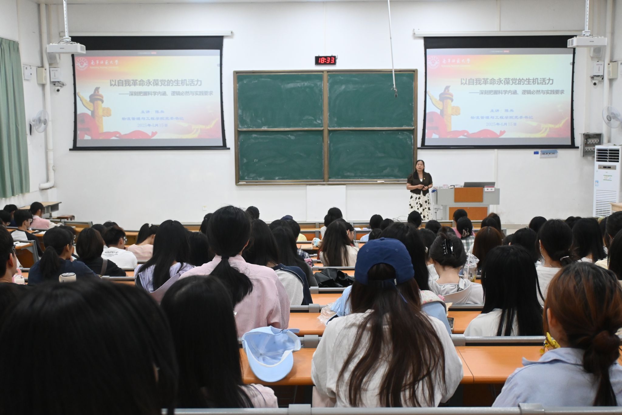 在第一讲课中,陈兵书记以“历史周期律”为引,围绕“以自我革命永葆党的生机活力”主题,从认识自我革命的科学内涵、理解其必然逻辑、推进其实践要求三方面展开培训。她指出,自我革命是党百年长盛不衰的重要原因,体现了居安思危、未雨绸缪的忧患意识,要求同学们积极进取,勇于创新。