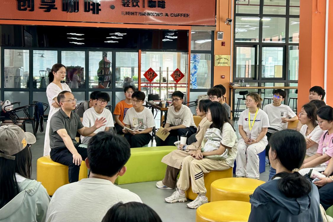 林丽玲老师用朴实的语言讲述教学故事。谈到学生抵触班规时,她传授班级管理经验:“与其强行要求,不如带着学生一起制定规则,教育是陪学生找答案,不是给标准答案。”最后,在自由探讨交流环节,两位老师耐心细致地为同学们解答关于未来教育行业发展的诸多疑问,提供切实可行的指导与建议。