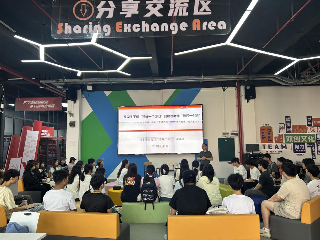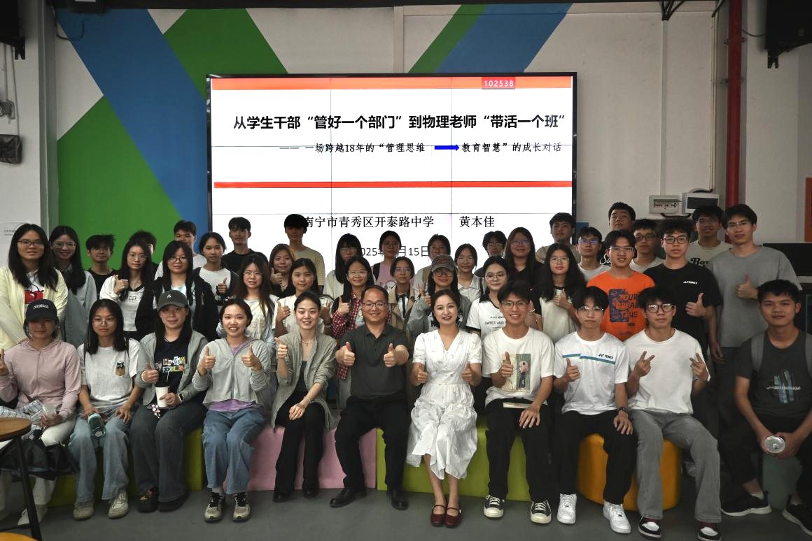 为进一步搭建校友与在校学子之间的交流平台,激励怀揣教育梦想的莘莘学子,物理与电子学院于4月16日上午在best365足球官网创新创业孵化园成功举办了首期“师生共话 薪火相传”分享交流会。此次活动特别邀请了杰出校友黄本佳、林丽玲(现为青秀区开泰路中学教师)回到母校,与在校师生进行深入交流。