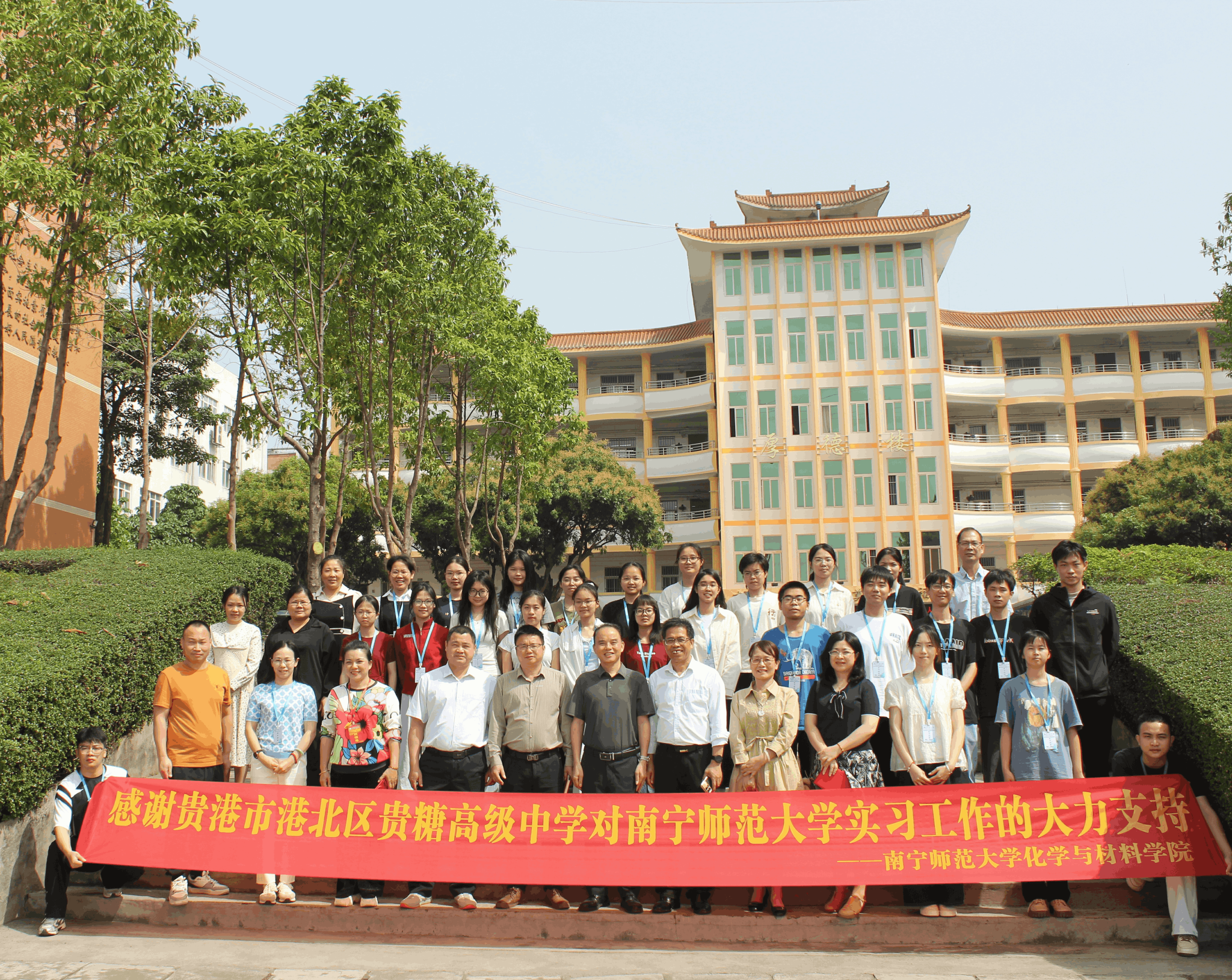 为深入了解实习生的教育实践情况,深化校际合作,4月15日,化学与材料学院党委书记屈泽明、党委副书记陈今浩、副院长朱汝葵等一行赴贵港市港北区高级中学与贵糖高中两个实习基地,开展教育实习中期检查与交流活动。