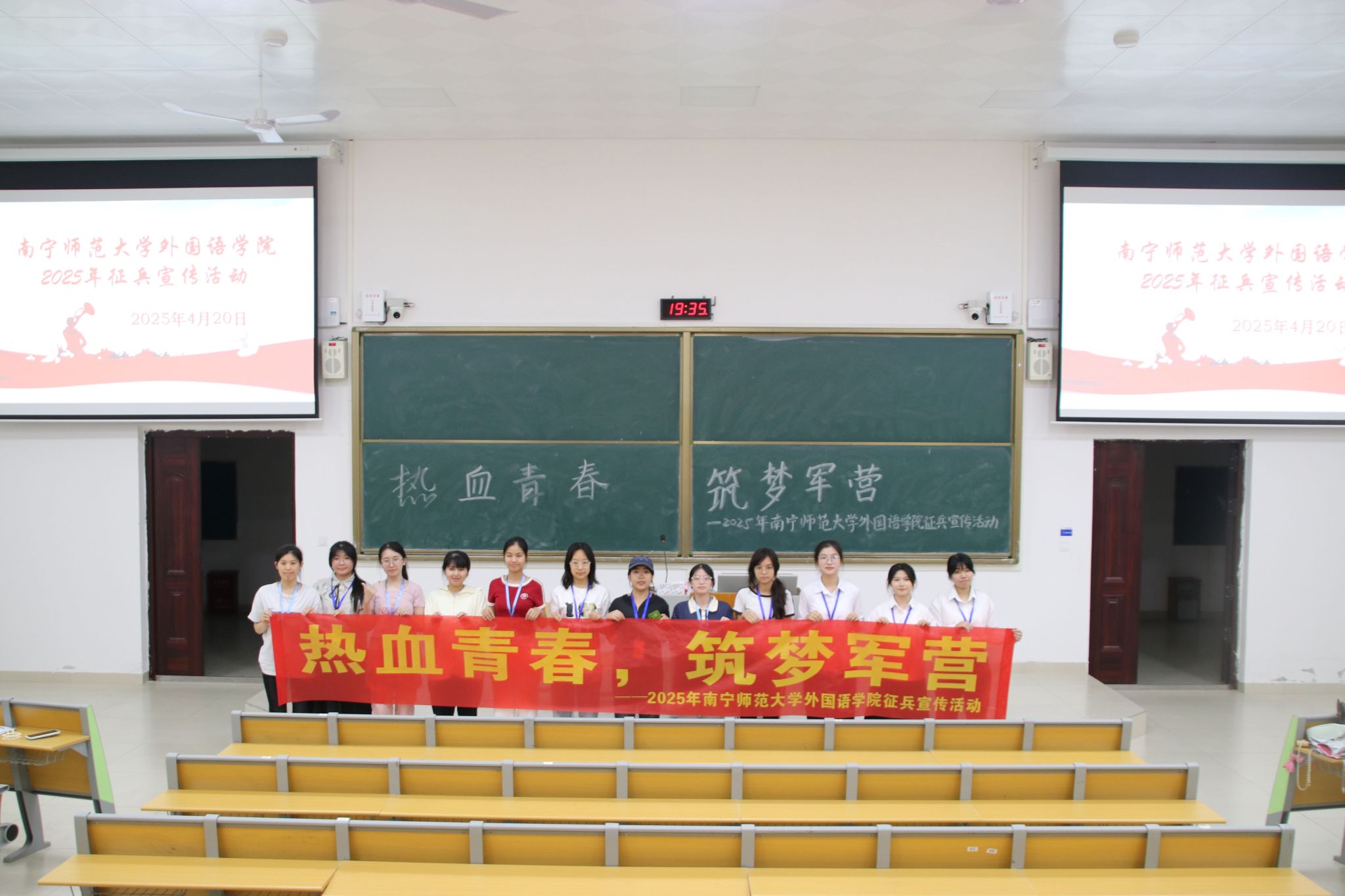 热血青春献国防,携笔从戎铸军魂。为深入贯彻落实国家征兵政策,激发青年学子参军报国的热情,2025年4月20日,外国语学院在实验楼1B-113举办了以“热血青春,筑梦军营”为主题的征兵宣讲会。