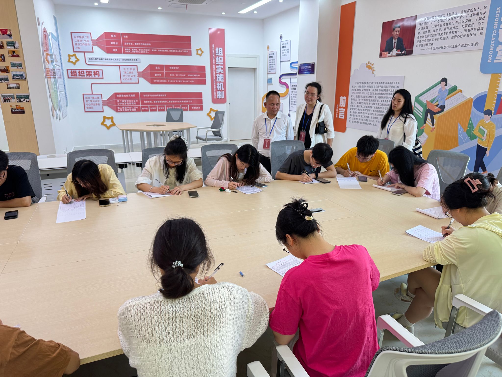 当日,李畅宝部长在校团委负责人的陪同下,来到学校第二课堂体验中心,走访各个学生活动场所,同时参观了学校书画协会开展的硬笔书法培训。校团委区丽媛书记介绍了学校第二课堂制度的建设情况,包括课程设计、学分认定、评价体系等方面的具体做法和经验。李畅宝部长对best365官网共青团工作给予了肯定,并就第二课堂建设、基层团组织建设和共青团促进大学生就业等工作提出具体指导。