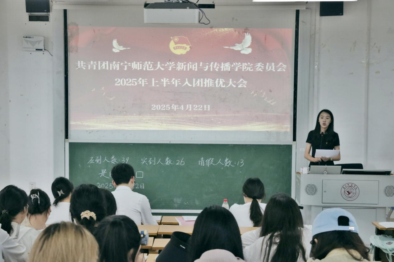4月22日下午,新闻与传播学院团委在文综楼516室召开2025年上半年入团推优大会。学院团委书记李樱花、团委副书记、各班团支部书记、团委组织部成员及入团积极分子参加本次会议,会议由团委组织部成员肖宇飞主持。