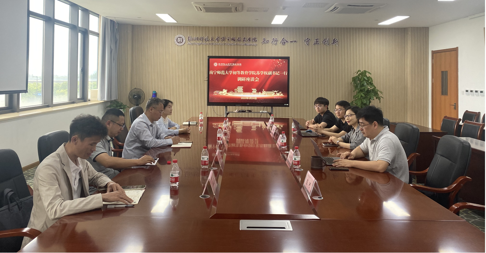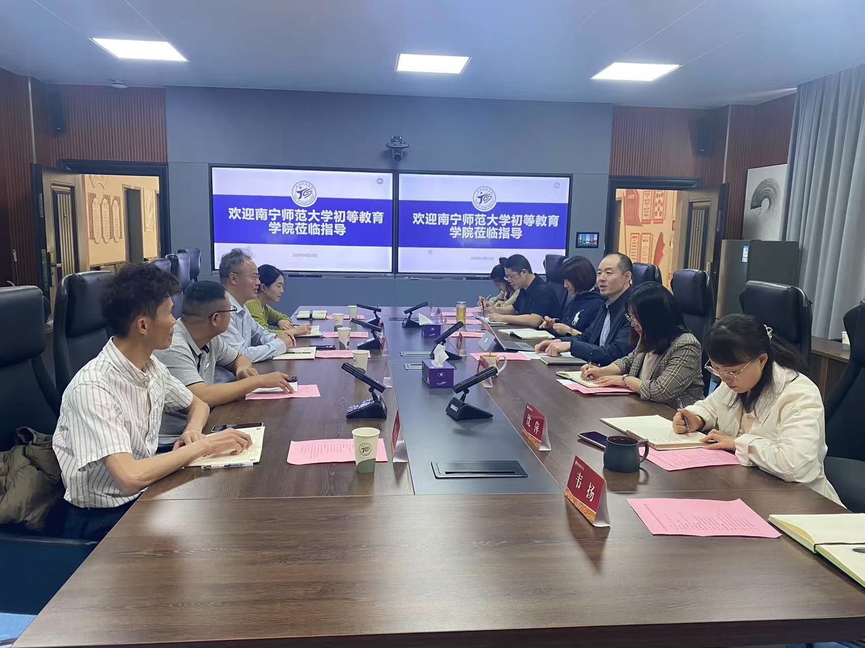 在上海师范大学教育学院,双方重点探讨了在人工智能技术推动教育变革、少子化现象加剧等背景下,如何以学生的成长需求为出发点,与专业教师形成育人合力,培养德智体美劳全面发展的新时代未来教师。上师大通过AI赋能学生工作打造的“师小育”智能体系列学生活动为我院提供了宝贵参考。