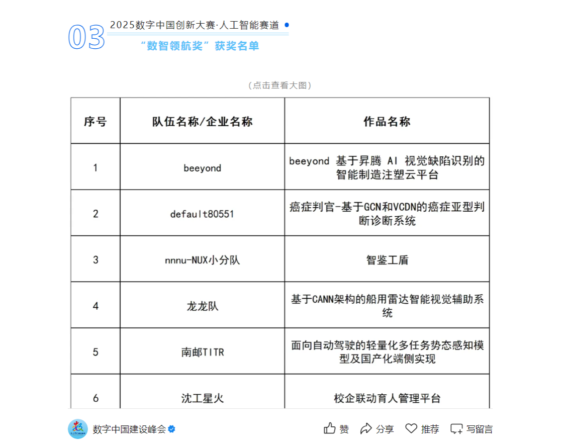 2025数字中国创新大赛・人工智能赛道以其高瞻远瞩的赛事定位与专业严谨的评审机制,成为人工智能领域备受瞩目的顶级赛事。该赛道紧密贴合时代发展趋势,聚焦 AI 技术在多行业的落地应用,围绕大模型、行业创新等前沿议题广泛征集作品,吸引了全国超1100支队伍、4000余人踊跃参赛,掀起人工智能创新热潮。
