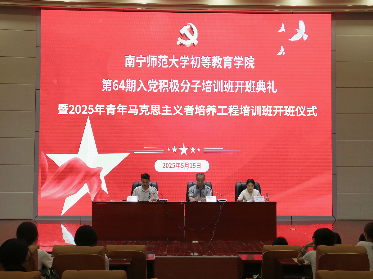 5月16日晚,初等教育学院在五合校区文科综合楼114报告厅举行第64期入党积极分子培训班开班典礼暨2025年青年马克思主义者培养工程培训班开班仪式。学院党委副书记苏学权、学院团委书记李欣、学院辅导员韦文平,第64期入党积极分子及2025年青马班全体学员参加本次会议。