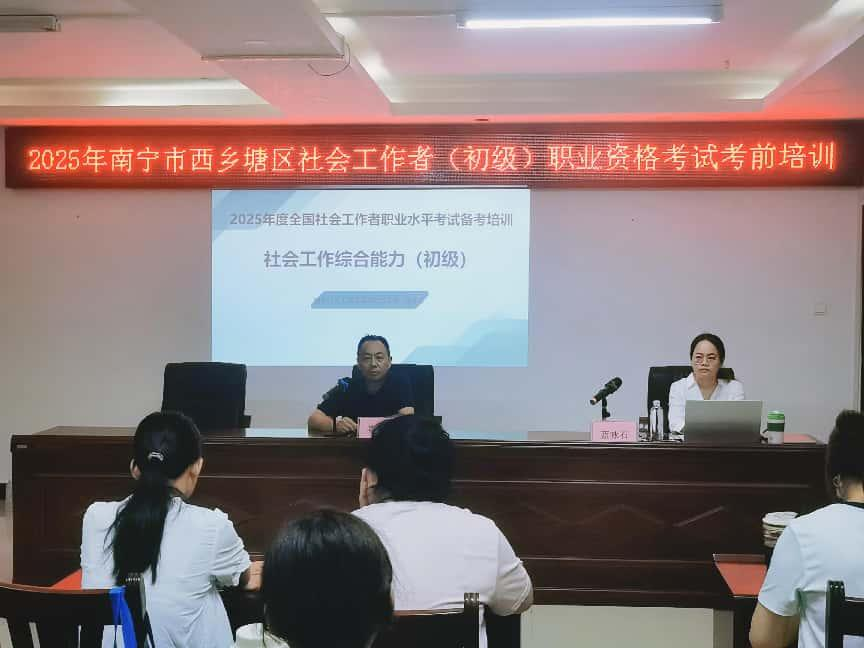 5月,社会工作系教师团队全面参与社会工作者职业资格考前培训工作。文丽老师及兼课教师黄燕春为由区党委社会工作部举办、广西社会工作协会承办的广西2025年度社会工作者职业资格考试(百色、玉林场)考前培训班授课;李瑜、蓝咏石等教师为南宁市各县区考生开展考前辅导培训,该培训由南宁市委社会工作部举办、南宁市社会工作协会承办。系列课程累计服务考生逾1800人次,助力提升全区持证社工比例。