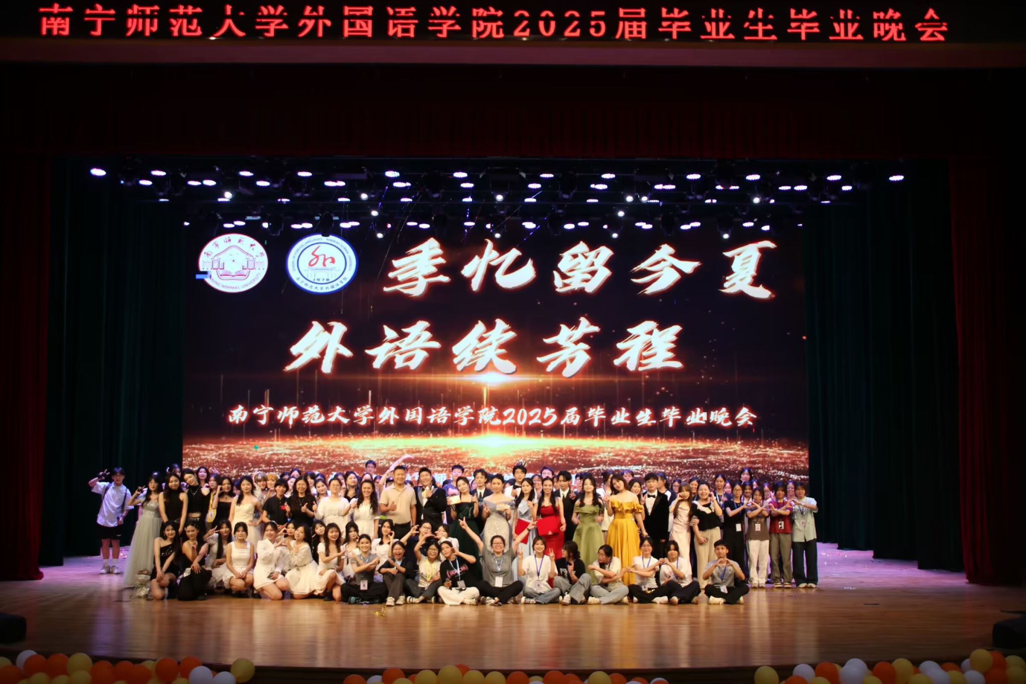 2025年5月20日晚,best365足球官网外国语学院在武鸣校区音舞院一号报告厅举办2025届“季忆留今夏,外语续芳程”毕业生毕业晚会。外国语学院党委苏华书记、刘晖晖副书记、蒙岚副院长、杨春梅老师、樊毅老师、陈小玲老师、学工办蔡梓晴老师、黄慧梅老师、团副主席团的全体成员们和外国语学院同学们共同观看了此次晚会。