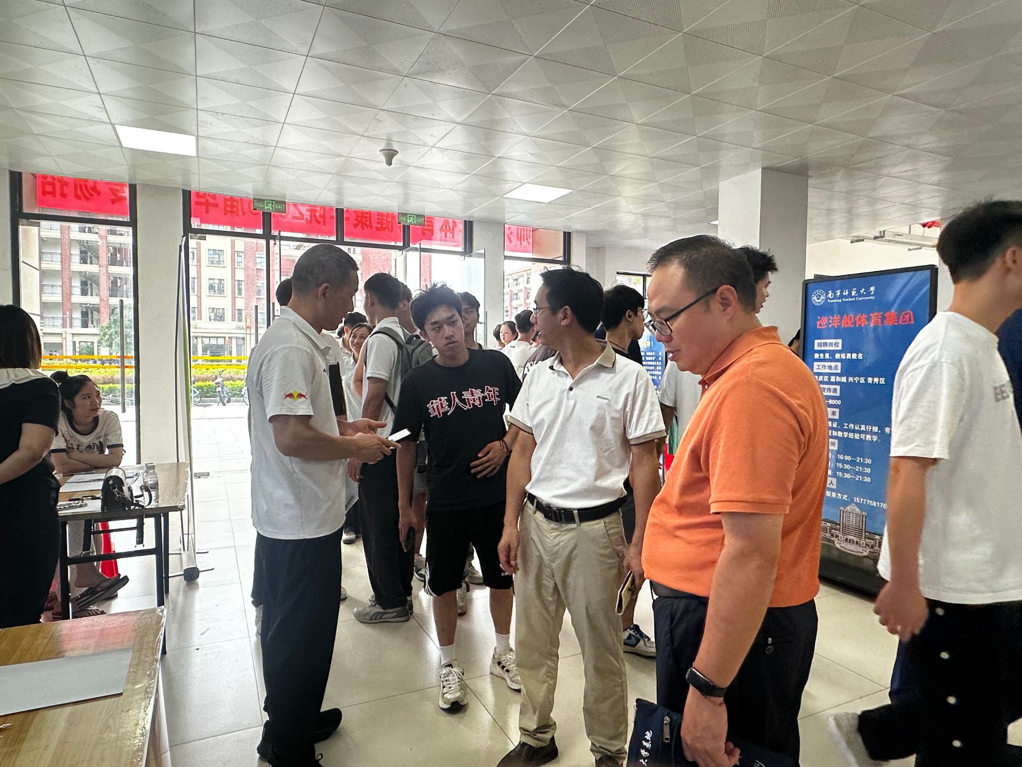 为切实做好2025届毕业生就业工作,5月23日,体育与健康学院在武鸣校区1号实验楼一楼大厅开展2025届毕业生专场招聘会。学校招生就业处副处长韦天翼到场指导,学院党委书记磨有积、副书记陈军弟及学工办全体辅导员等老师到场组织毕业班学生参加。