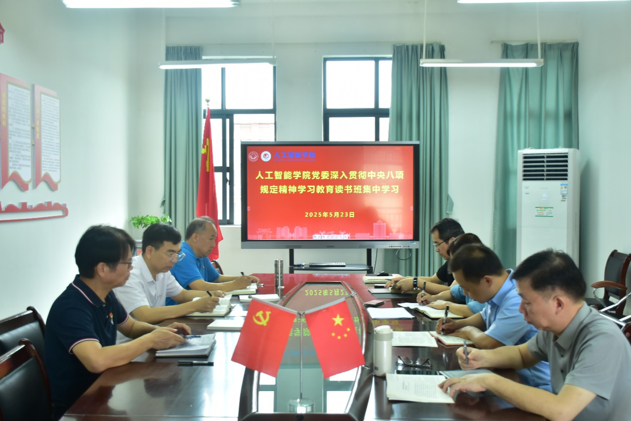 5月23日,人工智能学院/曙光大数据学院在武鸣校区地信楼A302会议室进行学院党委深入贯彻中央八项规定精神学习教育读书班集中学习。学院全体领导干部参加集中学习。