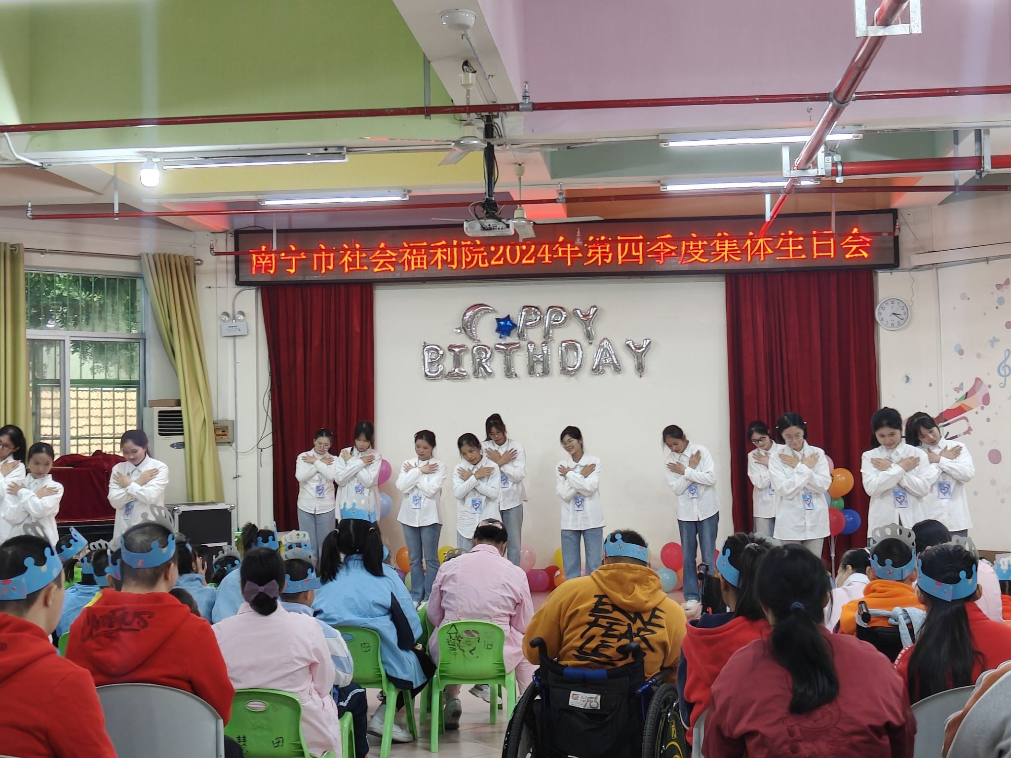 子活动二为“情暖冬日,共贺生辰”关爱特殊儿童老人的集体生日会活动。在活动中,志愿者们用艺术的形式传递温暖与关怀,为生日会营造了温馨、欢乐的开场氛围,让福利院的儿童和老人们感受到了来自社会的关爱与温暖。活动中通过设置趣味小游戏,有效增强了志愿者与儿童老人们之间的互动与交流。生日会活动为福利院的儿童和老人提供了一个温馨、快乐的生日庆祝环境,有效增加了福利院儿童老人的幸福感。