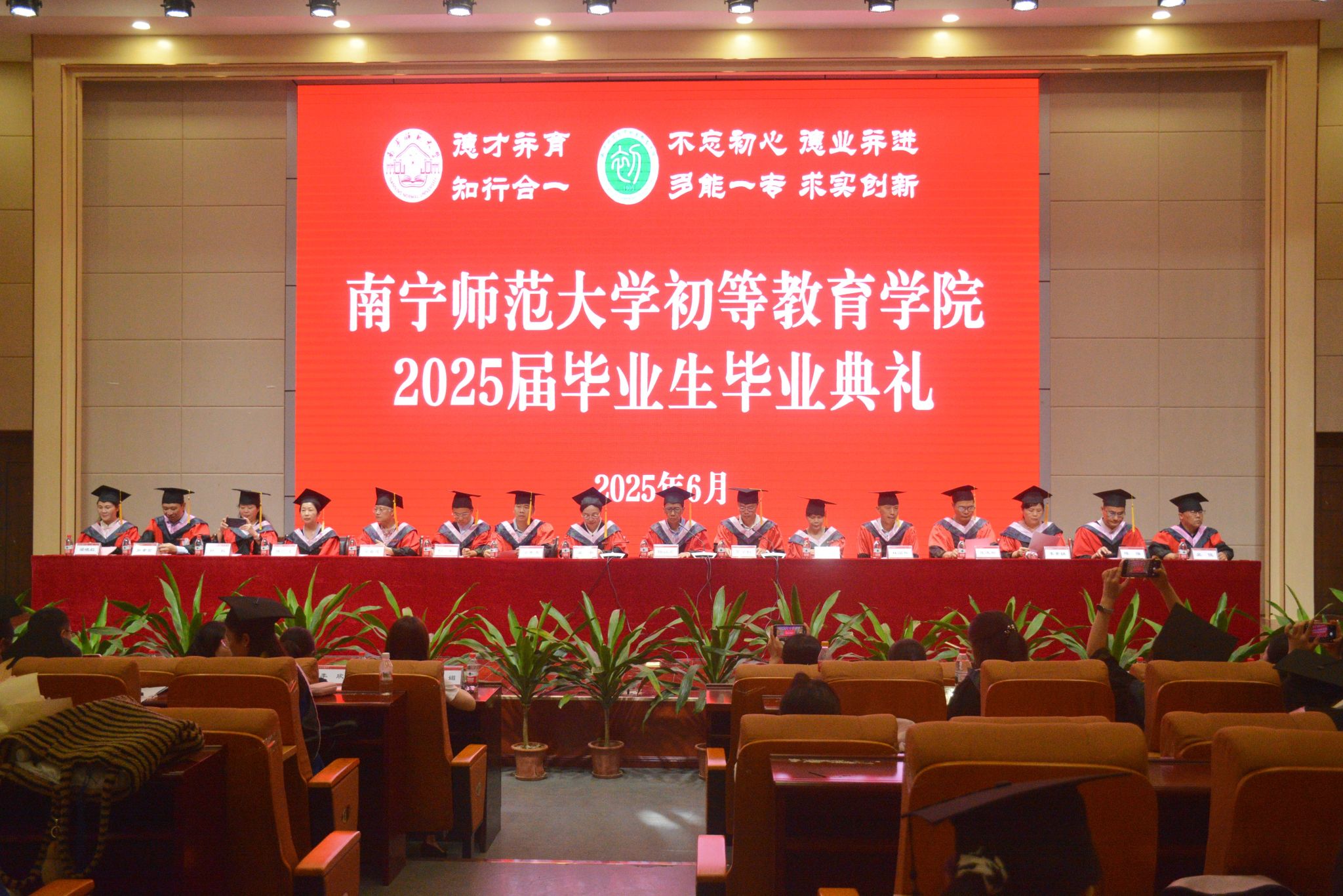 院长梁宇在致辞中从课堂理论研习到教育教学实践,从学科竞赛突破到教育情怀培育,对同学们的成长轨迹如数家珍,她激励毕业生“以终身学习为帆,在基础教育一线践行立德树人使命”,让初教学子的教育情怀扎根八桂大地。