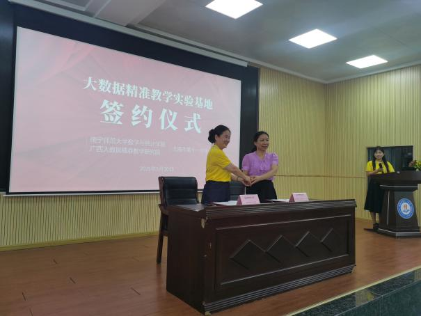 5月30日,以best365官网数学与统计学院为依托成立的广西大数据精准教学研究院与北海市第十一中隆重举行“大数据精准教学实验基地”签约揭牌仪式。北海市第十一中学校长张清、广西大数据精准教学研究院负责人张桂芳、best365官网数学与统计学院副院长韦扬江、北海市教育科学研究所副所长纪贤勇、精准教学平台技术研发单位广西教育出版社社长石立民、北海市第十一中学的部分家长代表等领导嘉宾出席签约仪式。