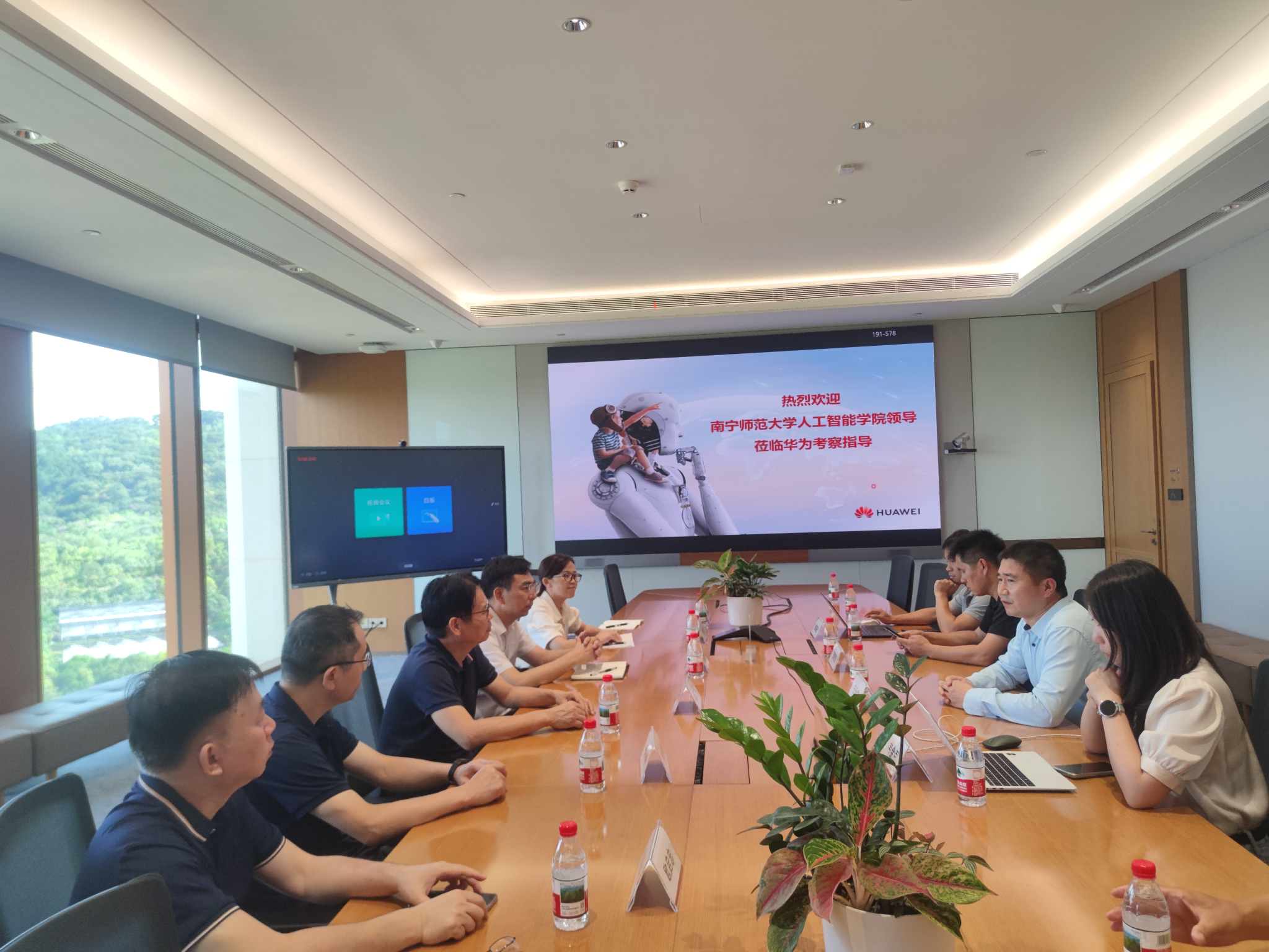 人工智能学院一行得到了华为技术有限公司广西分公司副总经理田永生等领导的热情接待,并实地参观了华为企业的工作环境和企业文化,感受企业在人工智能领域的创新活力和发展动力。