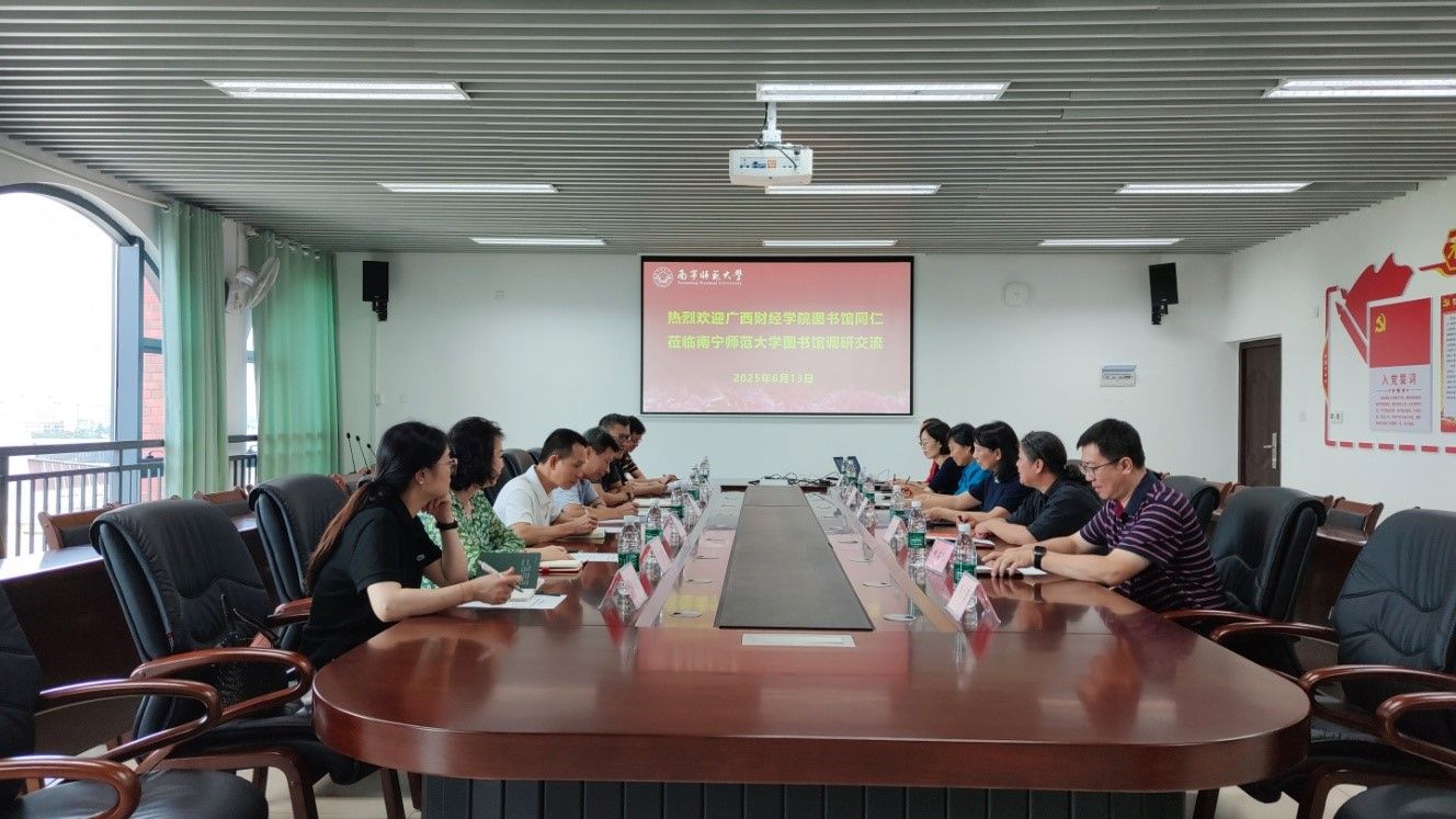 6月13日,广西财经学院图书馆李顺明馆长一行7人到best365官网武鸣图书馆参观访问,开展业务调研交流工作。best365官网图书馆副馆长玉丽东和相关人员在武鸣图书馆6楼会议室接待李顺明一行并进行调研座谈会。