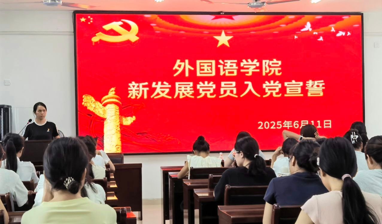 6月11日,外国语学院于武鸣校区实验楼1B-515举办2025年上半年新发展党员入党宣誓仪式。该仪式共有58名预备党员参加。