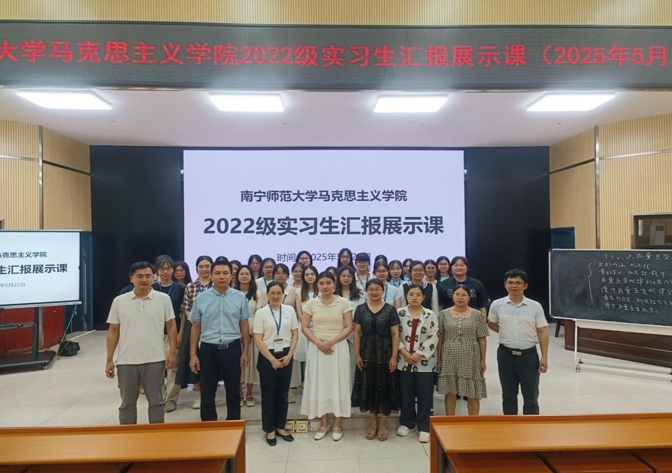 2025年3月17日至6月12日,马克思主义学院思想政治教育专业2022级本科生圆满完成了教育实习的实践工作。本次教育实习在北海市北海中学、北海市第七中学、柳州市钢一中学、柳州市前茅中学、柳州市第八中学、柳州市第二中学、南宁市青秀区荔英中学、南宁市智兴路初级中学、南宁市明天学校等自治区内九所中学进行。