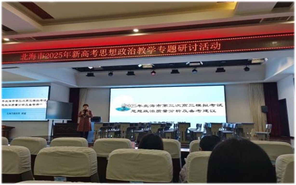 北海市第七中学的实习生们严格按照学校的“331”教学模式,出色地完成了一系列讲课任务。同时,他们积极投身实习学校的各类活动,全面提升自我。学校的艺术节等活动中,也总能看到他们忙碌而投入的身影。在“北海市2025年新高考思想政治教学专题研讨活动”中,实习生们认真听取了模拟考试质量分析、观看了专题复习课展示以及吸收了名校教师分享的教学经验。
