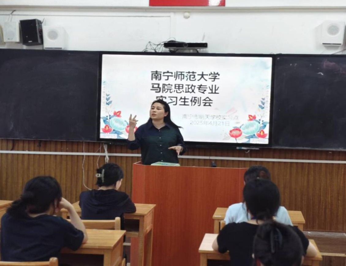 南宁市智兴路初级中学的实习生们积极向一线教师请教,主动观摩课堂并听取教学反馈。在课前准备环节,他们反复推敲和精心打磨教学方案,力求让每堂思政课和班会课都成为精品。此外,他们还热情投入到学校各项特色活动中,例如三月三五色糯米饭制作活动、中考百日誓师活动。通过这些丰富多彩的校园文化活动,实习生们深入了解学校的教育理念,帮助学生调节学习节奏,拓展视野,实现教学相长,共同提升。