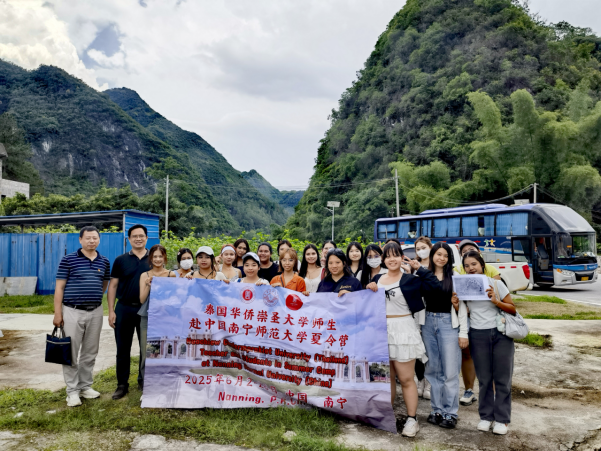 下午,在大龙洞村党群服务中心举行校、地、景区三方座谈交流会。县文广体旅局、大龙湖景区和村民代表分别介绍了上林县及大龙湖景区的基本情况与发展规划,为后续讨论奠定基础。随后,学校座谈代表、县文广体旅局、景区管理人员围绕“分段激活山水资源,多元招商破局增收”这一核心议题,针对景区规划、运营模式、招商策略等方面展开深入交流,提出了一系列切实可行的方案。来自中国政府奖学金国际暑期夏令营项目的泰国籍留学生们结合泰国旅游发展的经验,从国际化视角出发,为大龙湖景区的开发提出了新颖且极具参考价值的建议,为景区的发展带来了全新思路。村民代表从当地实际情况出发,表达了对景区发展的期望与诉求。多方智慧汇聚一堂,为大龙湖景区的发展绘制出一幅清晰而美好的蓝图。