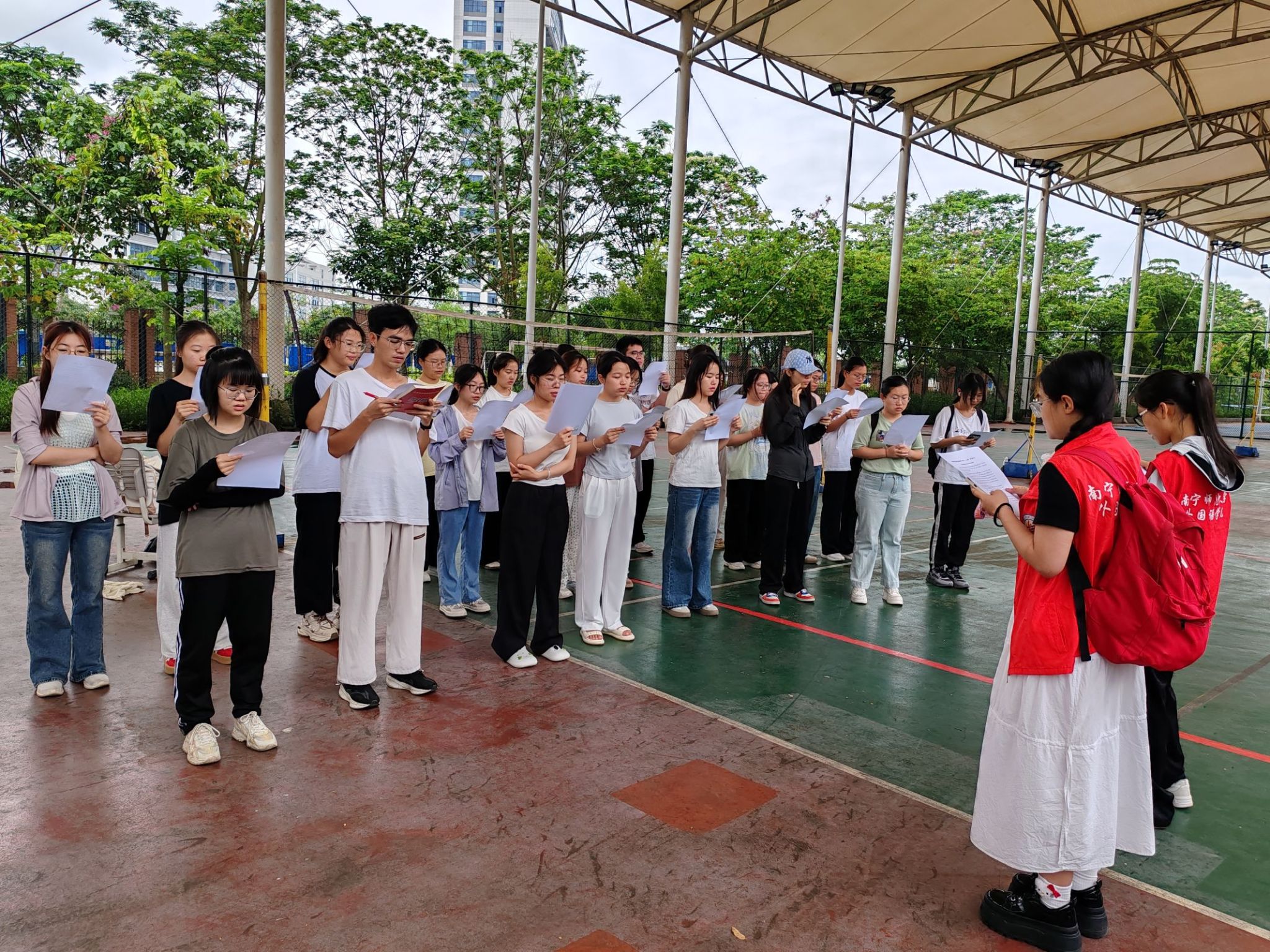 活动面向武鸣校区非外语专业的学生,由外国语学院本、硕学生组成志愿者团队,经专业培训后,为参与者提供晨读指导。晨读资料紧扣四六级等考试需求,采用领读、跟读的模式,由学习部、实践部、资助部联合推进活动开展。