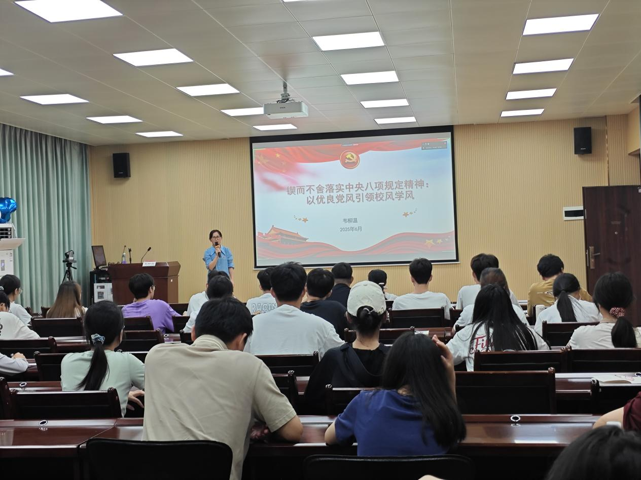 专题党课覆盖教师、研究生、本科生多层面党员,通过“理论解读+案例剖析+实践指引”,使党员深刻认识中央八项规定精神的时代内涵和实践要求。学院将通过建章立制、规范管理、强化执行,持续推进作风建设与教育教学、学生教育管理、科研管理的深度融合,诠释“作风建设永远在路上”的深刻内涵。