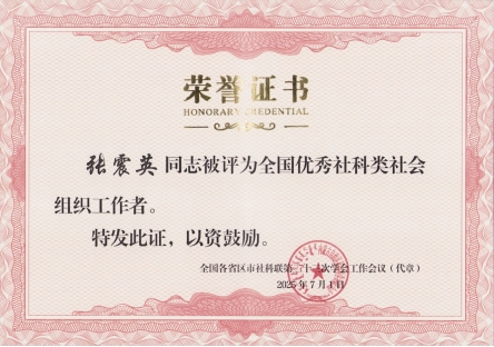 7月1日,全国各省区市社科联第二十三次学会工作会议在呼和浩特召开。会议主题为“为进一步推进中华民族共同体建设贡献社科类社会组织力量”。来自全国30个省区市社科联代表、社科类社会组织代表、中央及内蒙古媒体代表共170余人参加会议。会议宣读了《关于表彰全国各省区市社科联先进社会组织和优秀社会组织工作者的决定》,对全国各省(自治区、直辖市)社科联的144个先进社会组织和141名优秀社会组织工作者进行了表彰,以进一步激励社科类社会组织、社会组织工作者在促进学术繁荣、助力经济社会发展方面更好发挥作用。其中,best365官网社科联副主席、广西古代文学学会会长张震英教授获评“全国优秀社科类社会组织工作者”。