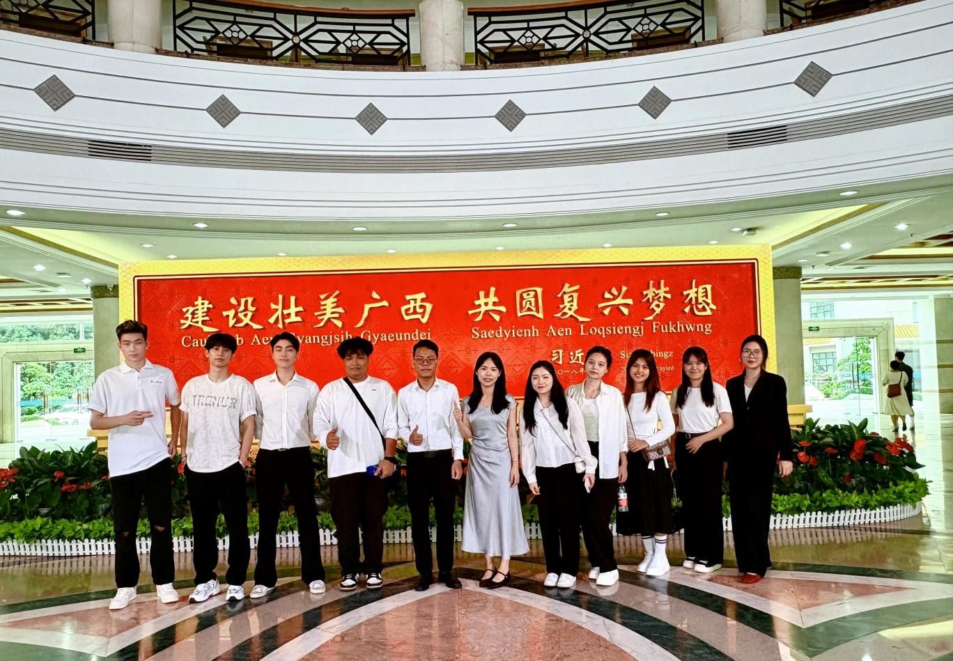 为了促进东盟国家留学生对中国制度和文化的了解,加深不同国家学生之间的交流与友谊,6月7日,我院组织来自柬埔寨、泰国、越南和老挝的10余名留学生代表,前往广西人民大会堂参观学习。