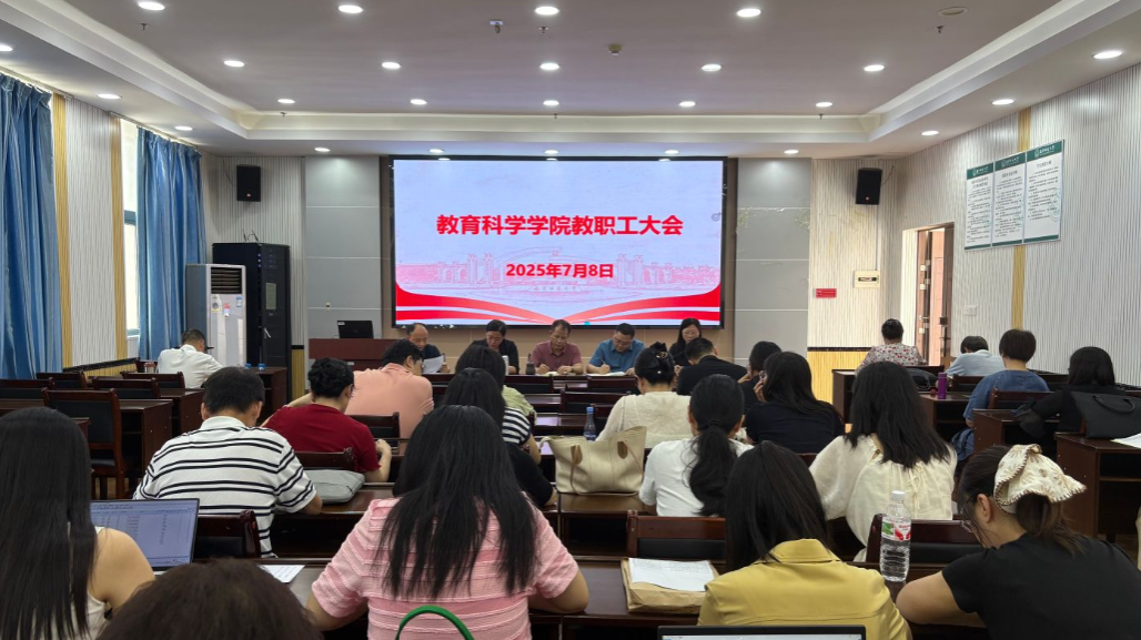 7月8日,教育科学学院全体教职工会议在理综楼1003会议室召开。会议由院长李强主持,学院领导班子成员及全体教职工齐聚一堂,围绕本科与研究生教学、学术科研、学生工作及党委工作等核心领域展开深入研讨与系统部署。