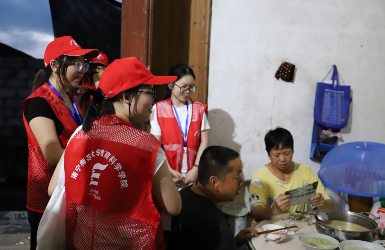 驻村第一书记巫福星对实践团来到天宝村开展支教和调研活动表示欢迎,并向实践队介绍村内情况,同时针对乡村环境特点,着重强调“勿私自下水”的安全纪律,守护团队人身安全。傍晚时分,实践团队在巫福星书记的带领下走进村落,逐户走访宣传此次“三下乡”活动内容,热情招募当地学生参与暑期夏令营活动。实践队员的真诚与热情感染着孩子们,孩子们纷纷在报名表上写下自己的名字,“情暖童心”的种子在乡土间悄然播撒。